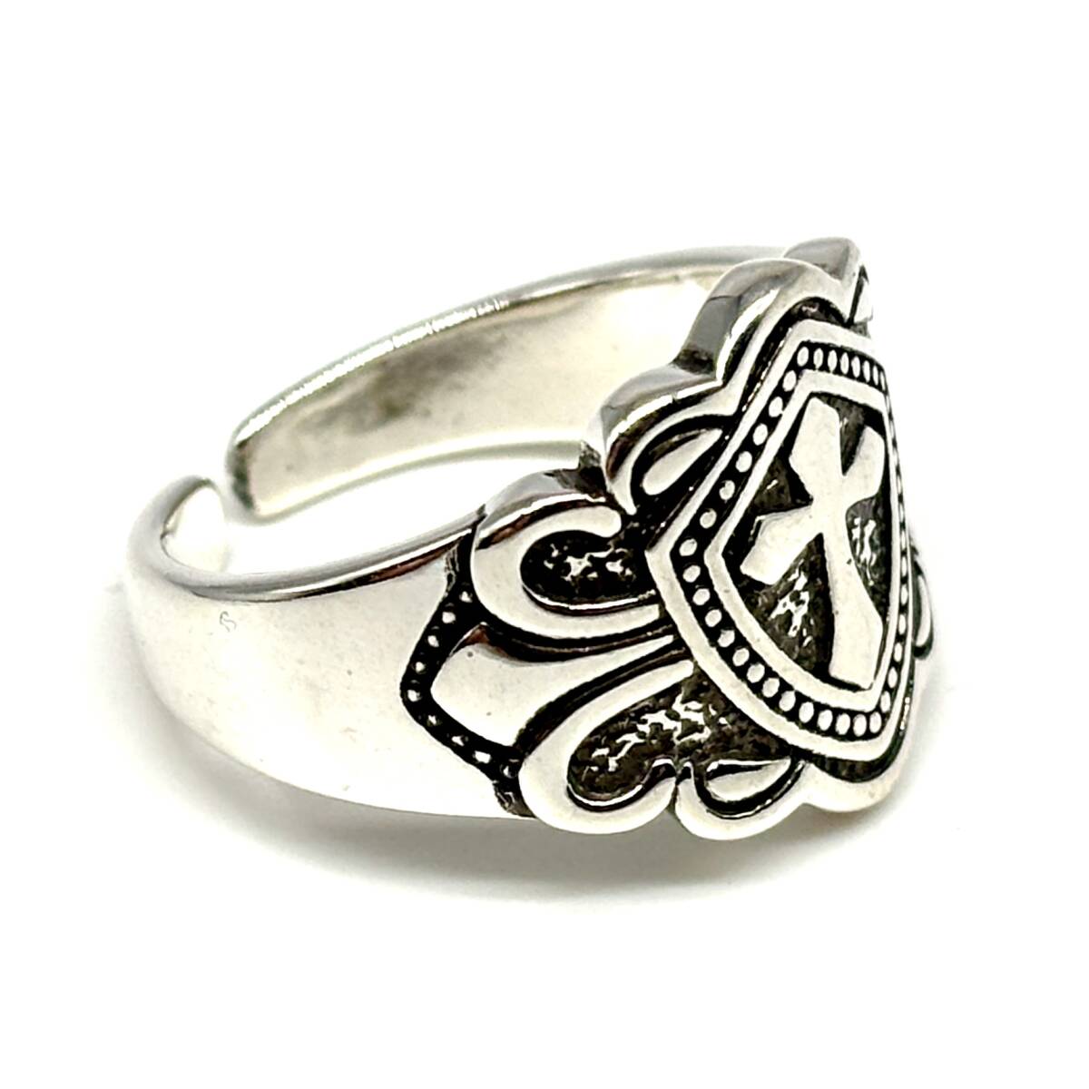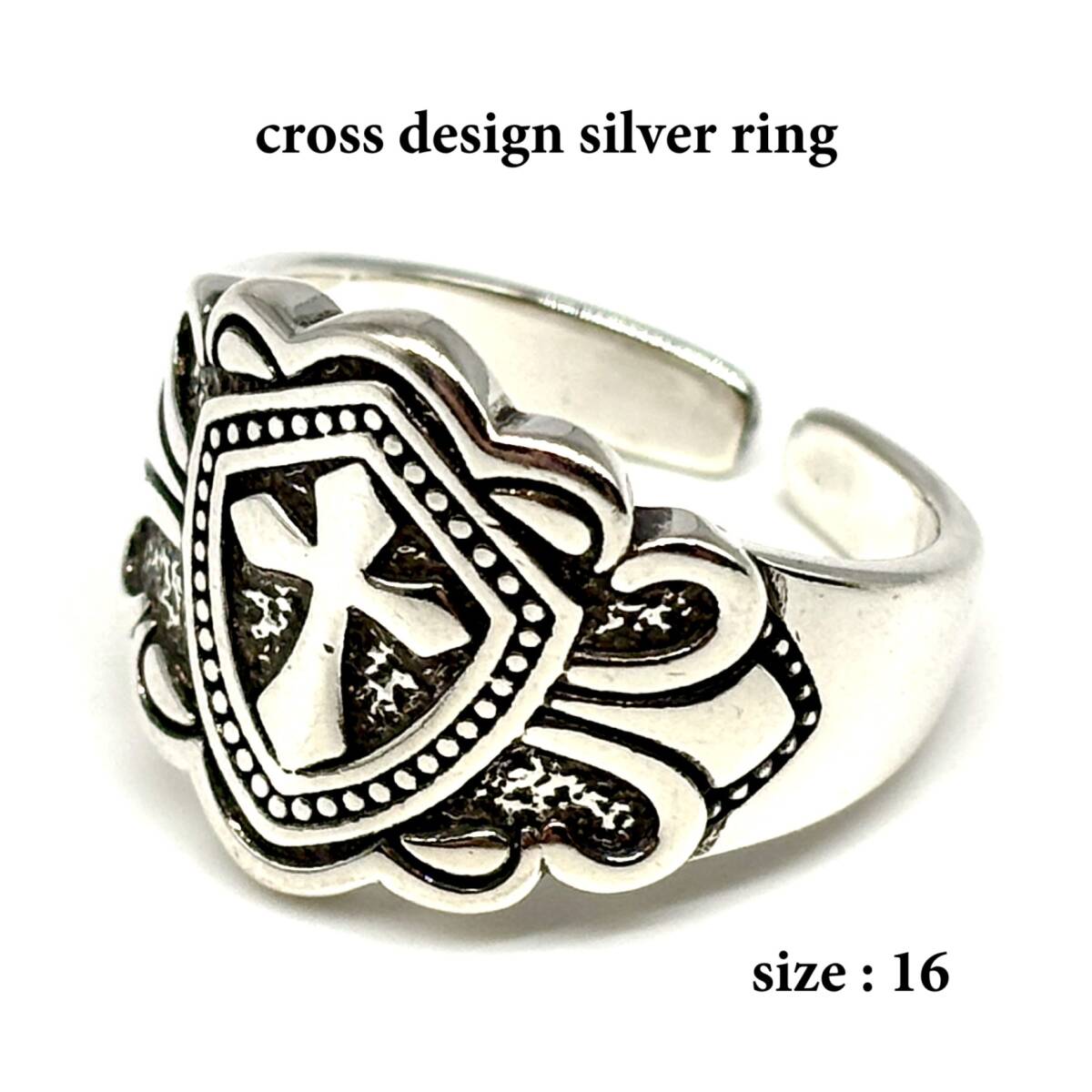 《 送料無料 》 リング メンズ 指輪 16号 シルバー 新品 人気 未使用 フリーサイズ ストリート カジュアル クロス 十字架 韓国系【PN3375】