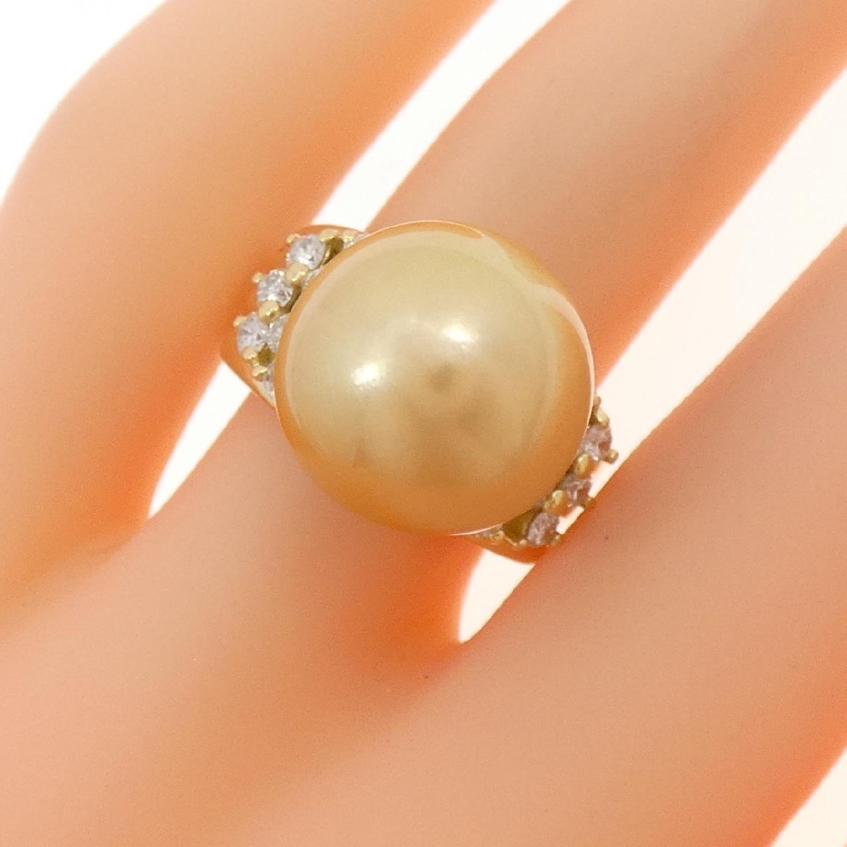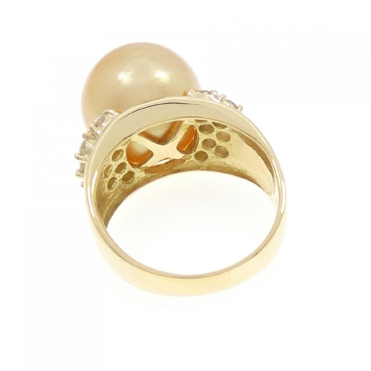 ゴールドカラーの白蝶パールをセッティング。眩く輝くダイヤモンドが両脇にあしらわれ、指元を華やかに飾ります。