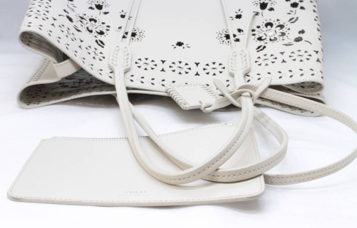 | ◆商品説明◆ | 【カラー】 ・アイボリー系 ・シルバー金具 【素材】 レザー 【寸法】 約W36.0cm×H29.0cm×D15.5cm 【仕様】 取り外し可能ファスナー付きポーチ 【商品ランク】 5段階で5を新品とすると3.0です。 【商品状態】 ・バック四隅角底、バック一部、バック内一部、ポーチ一部に少し擦れ汚れが御座います。 ・手持ちハンドルに保管のよるクセが御座います。 ・一部に少しレザージワが御座います。 ・全体的に使用感も少なく綺麗な状態です。 【商品コメント】 ・ヴィンテージのバンダナにインスピレーションを得たスタイル。 ・レーザーカットのフローラルが、Polo のベストセラーのレザートートにモダンな女性らしさをプラス。 ・取り外し可能で実用性を高める必需品収納用のポーチ付き。 ◆購入先について 掲載商品は買取り商品、質流れ商品、宝石商からの購入品及び業界オークションにて購入した商品になります。 全てが鑑定・真贋済みの正規商品となりますので、ご安心下さい。 |