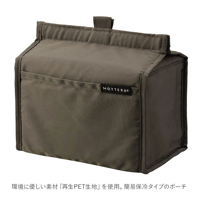 | 商品説明 | 「MOTTERU」のサーモお弁当箱がぴったり入る、クーラーポーチが発売。 ・環境に優しい素材「再生PET生地」を使用。簡易保冷タイプのポーチ。 ・口元は面ファスナー式。ループをつまめば開け閉めカンタン◎ ・両サイドにフラップがあり、隙間なくフィット! ・ポーチタイプなので、場所を取らずカバンに入れやすい。 ・フロントにオープンポケット付き。 |