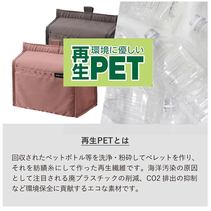 | 素材 | 表地:ポリエステル(再生PET) 裏地:ポリエステル |