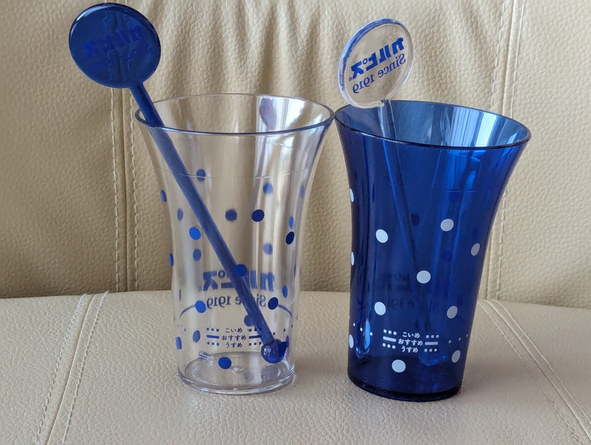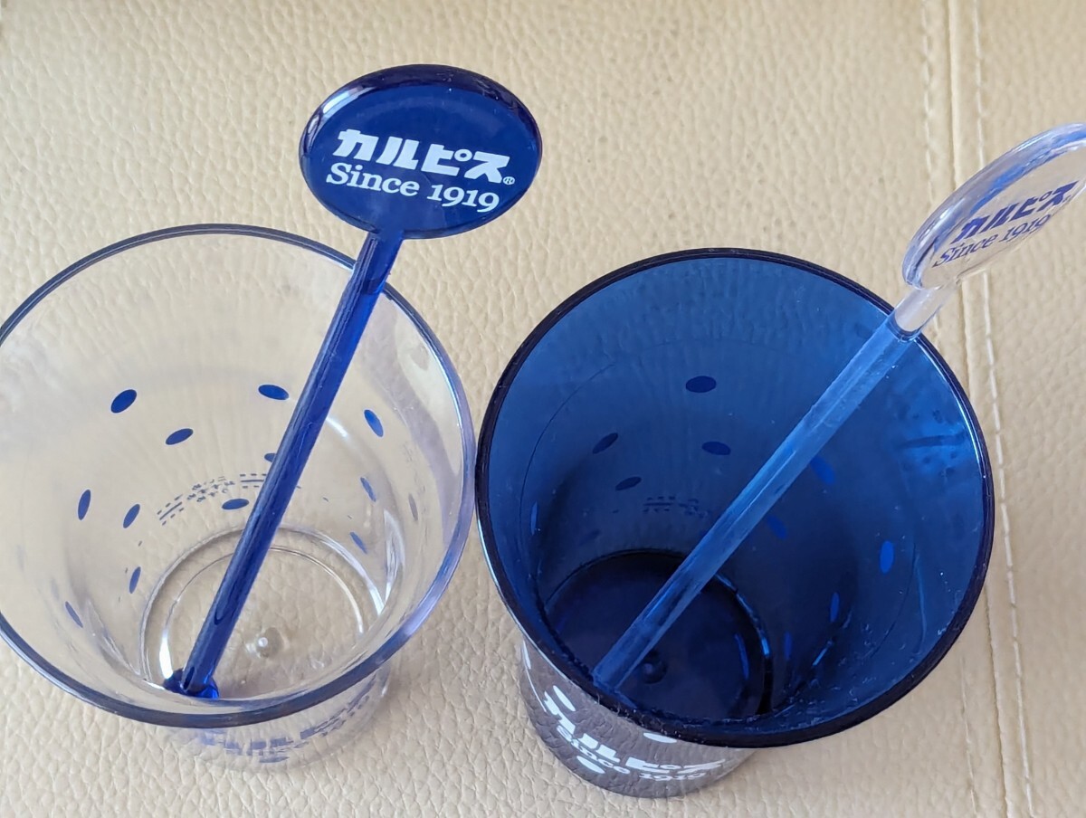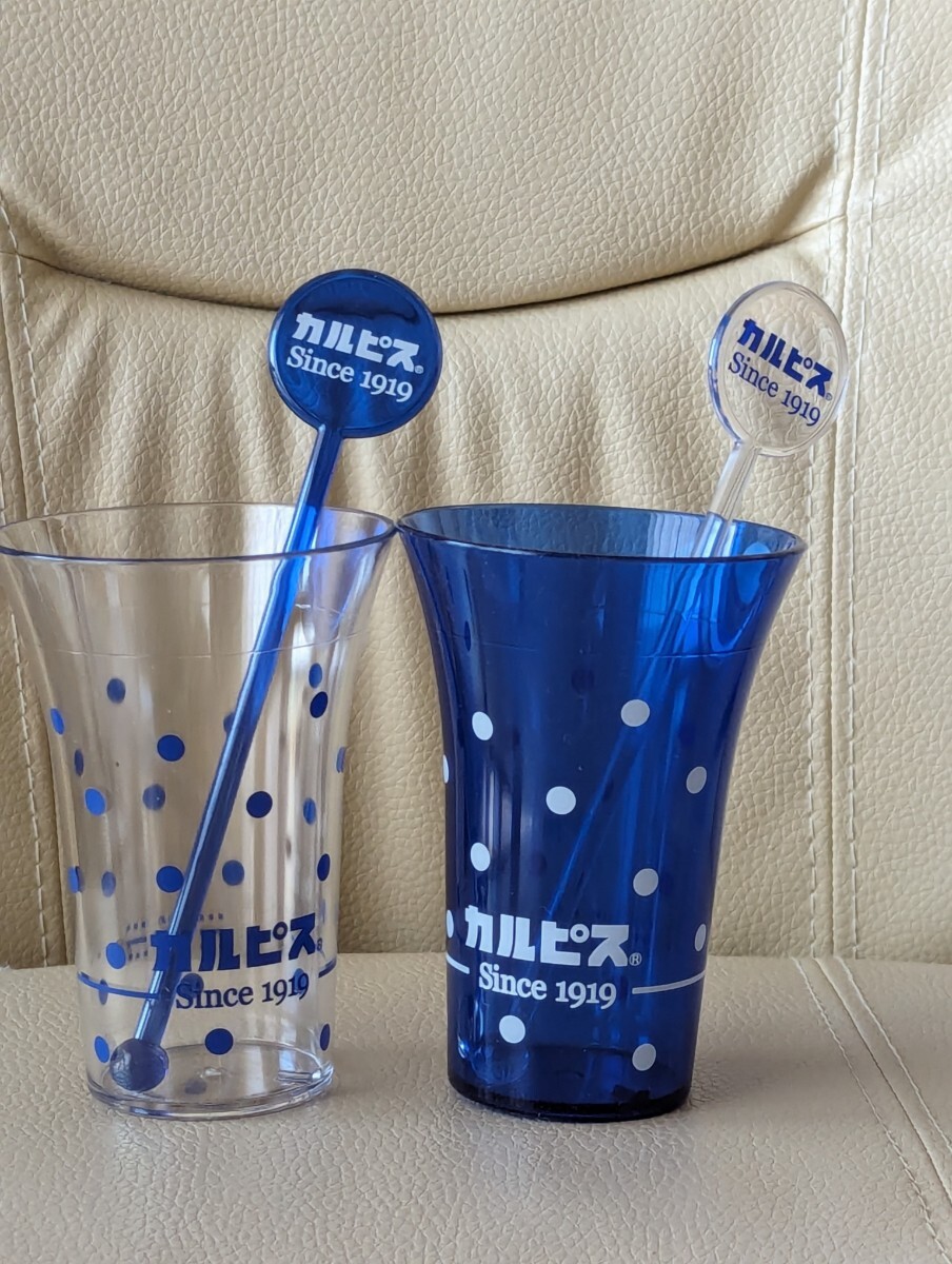 <送料無料>カルピス コップ&マドラー 2個セット 100th アサヒ 水玉 AS樹脂 プラスチック