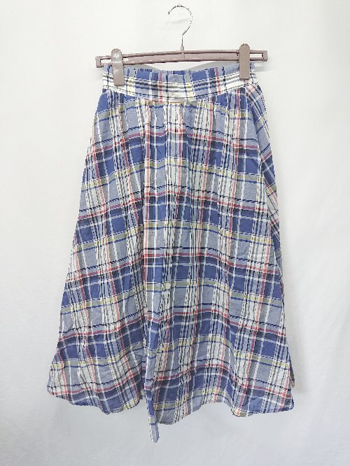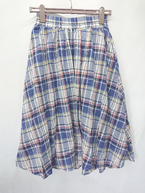 ◇ ⊂ GLOBAL WORK グローバルワーク チェック 膝下丈 フレア スカート サイズM ネイビー ホワイト系 マルチ レディース E