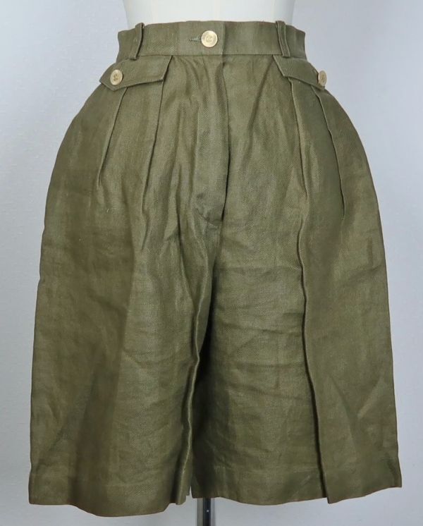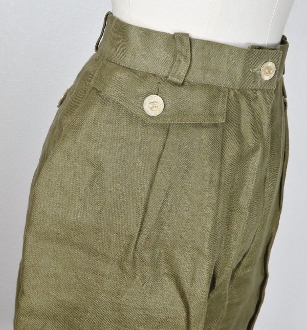 VINTAGE CHANEL coco buttons linen shorts size 36 シャネル リネン ココマーク ボタン キュロット ショート パンツ <色> 画像を参考にお願いします <素材> 100%linen <サイズ> 36 <寸法> ウエスト58股上34股下23裾幅30(単位:㎝) <商品状態> 擦れや少々のツレ、多少の着用感はございますが綺麗なお品です。 <備考> フランス製 ■支払方法 YAHOOかんたん決済で落札価格+送料をお支払いください。 ■発送詳細 佐川急便、送料全国一律900円