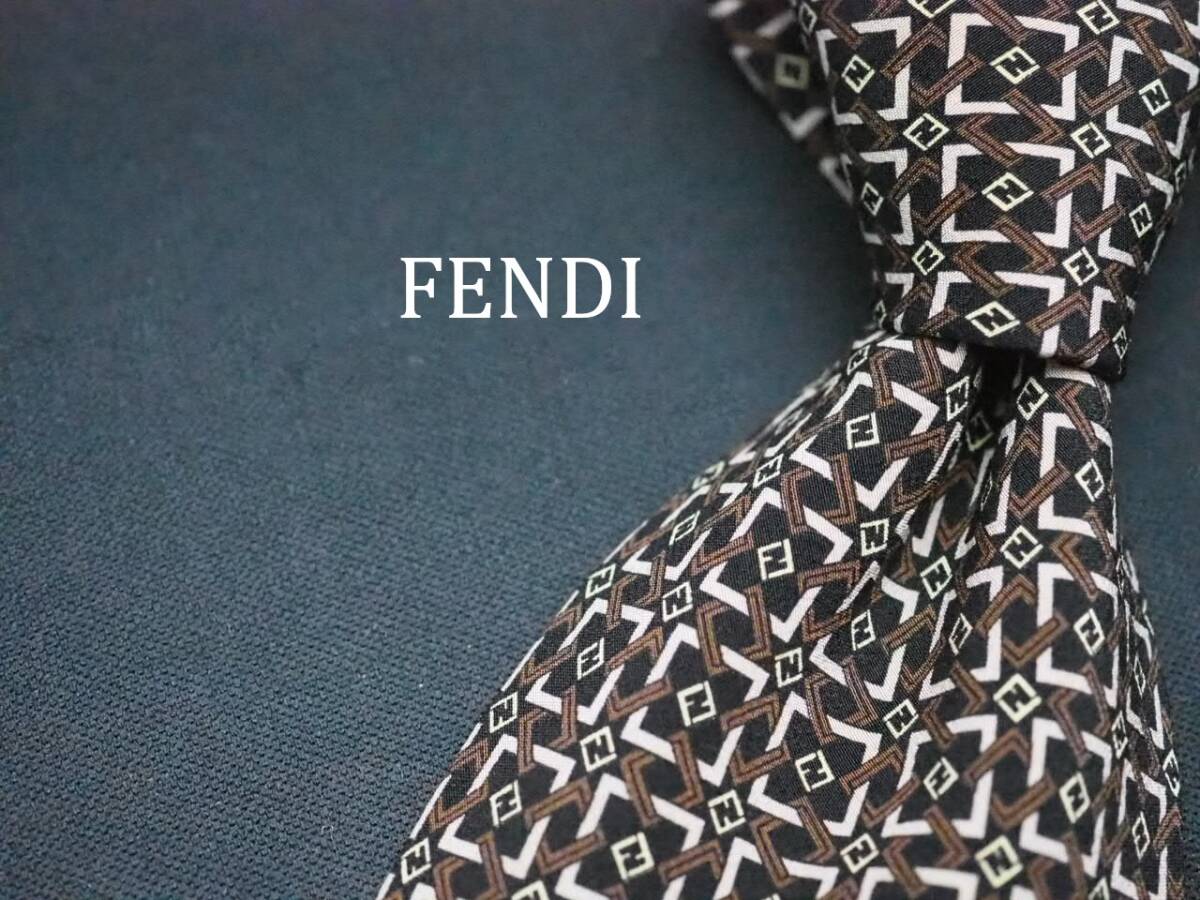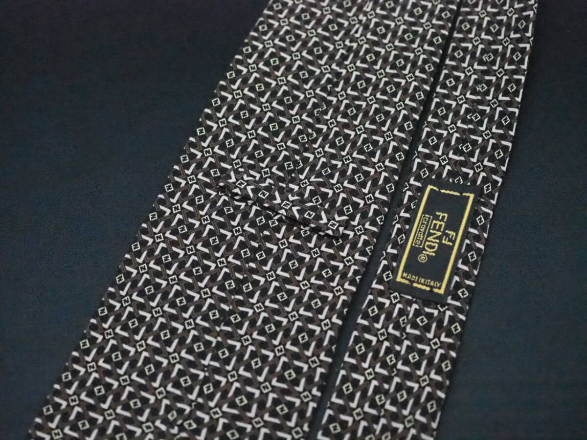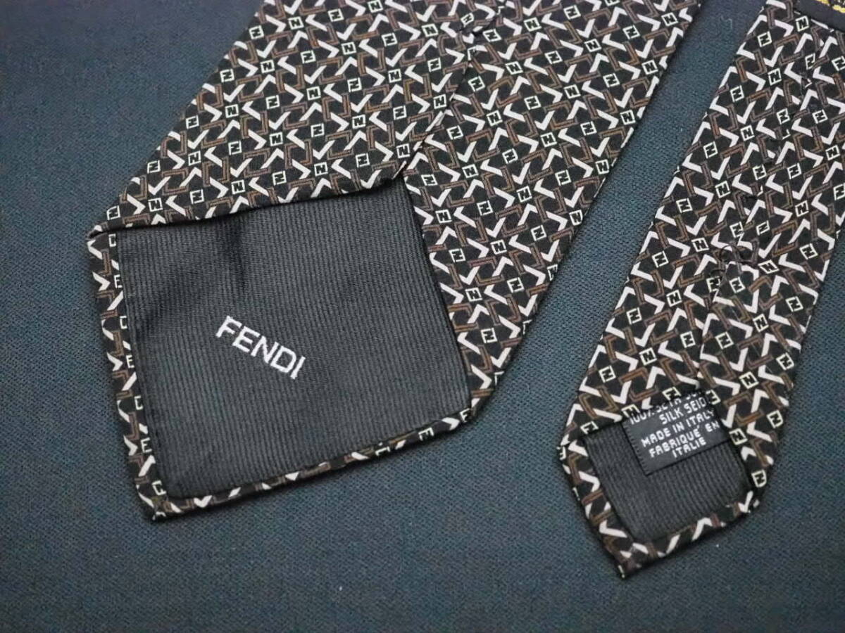 【FENDI フェンディ】 E2606 ブラック ブラウン ロゴ SILK ブランド ネクタイ 古着 良品