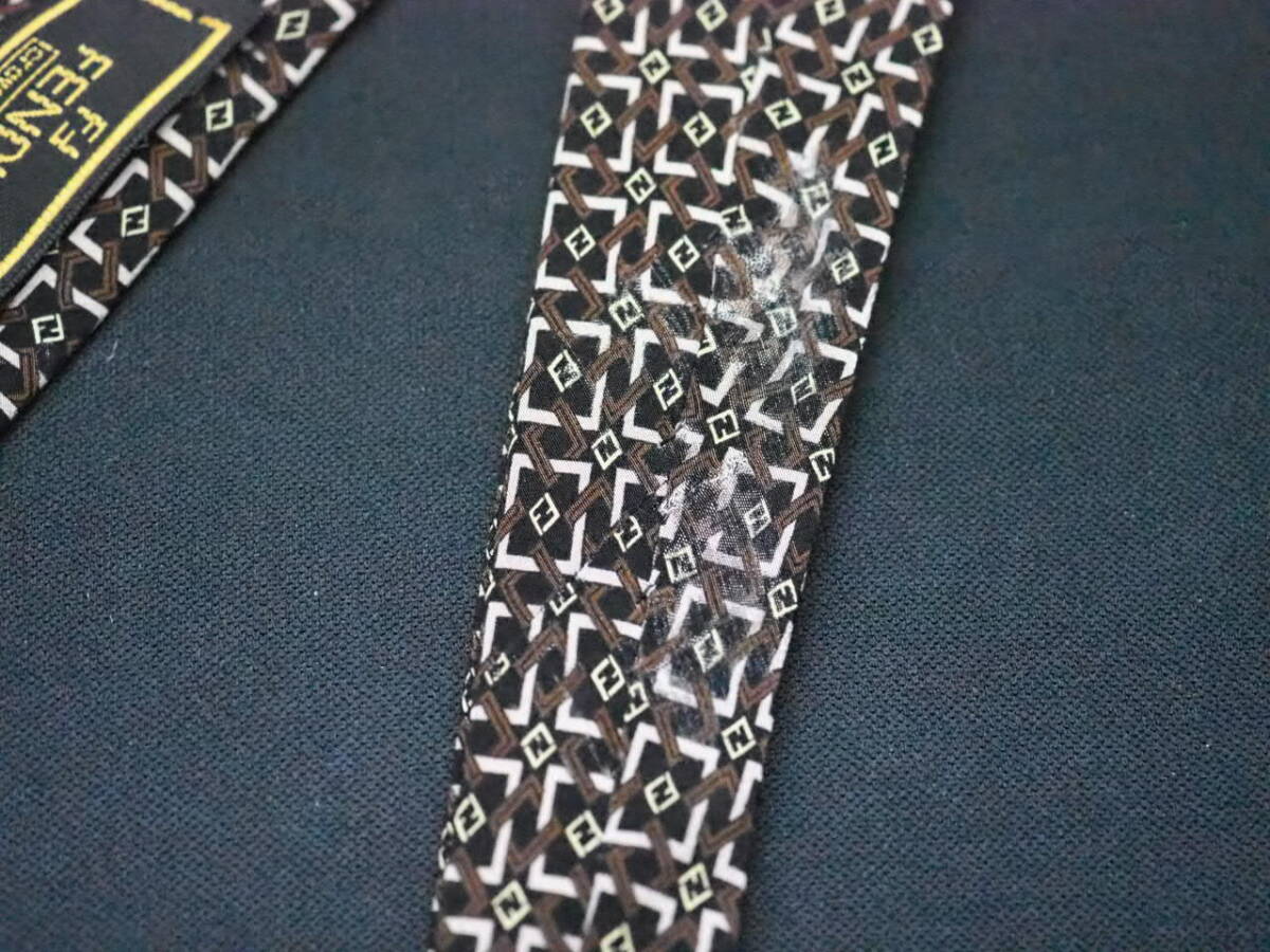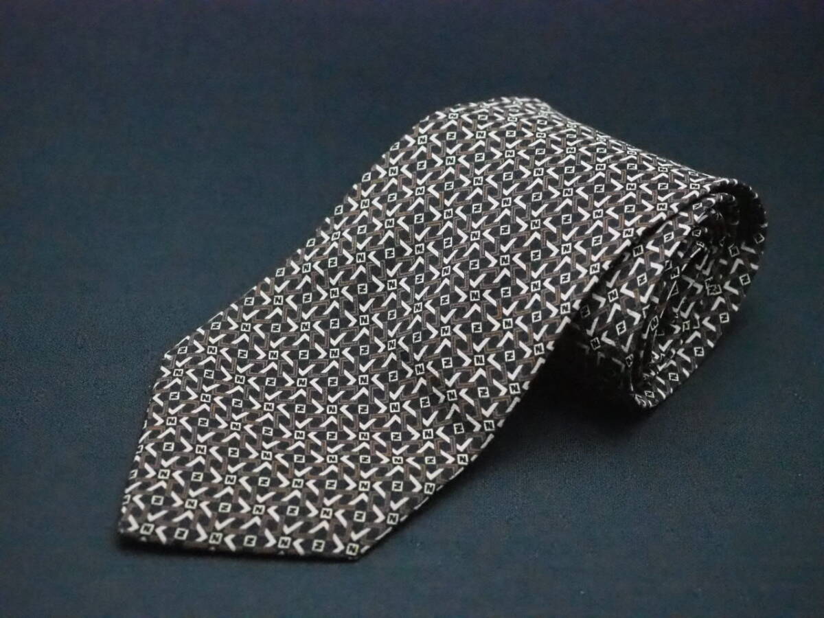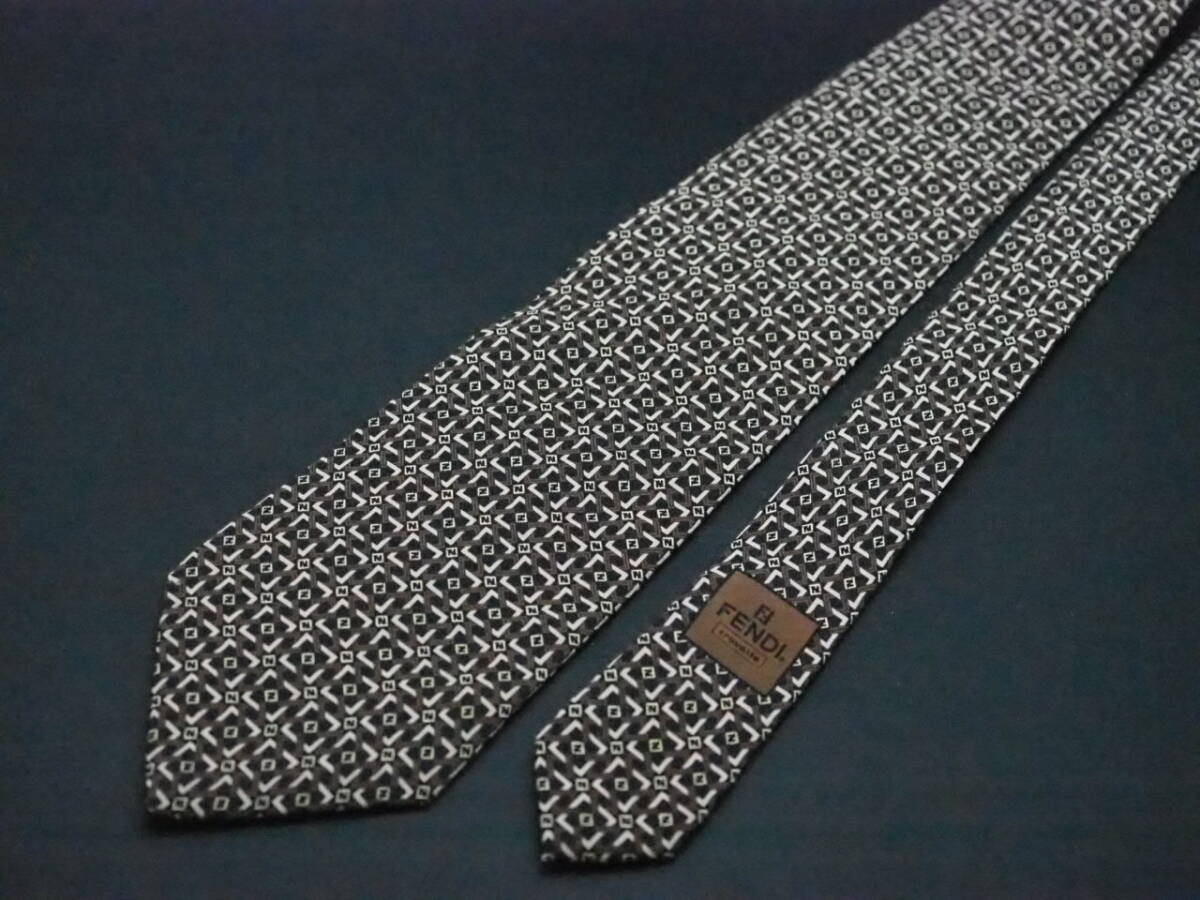 【FENDI フェンディ】 E2606 ブラック ブラウン ロゴ SILK ブランド ネクタイ 古着 良品