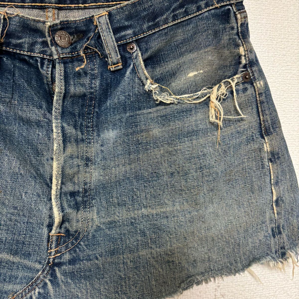 ビンテージらしい綺麗な色落ちと色味で風合い良くダメージも雰囲気がありミニでY2Kにもオススメの一枚です。