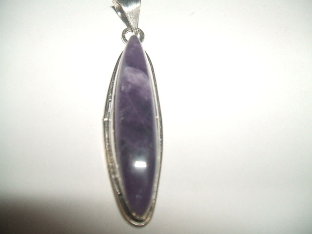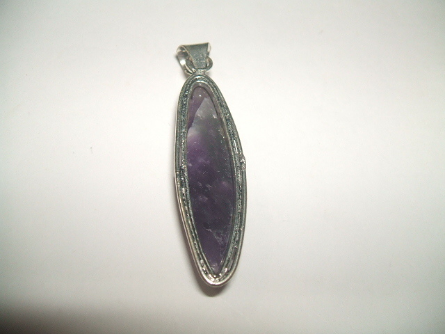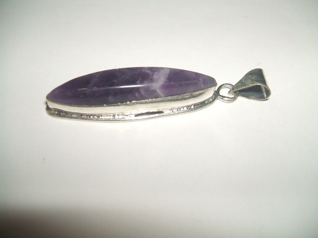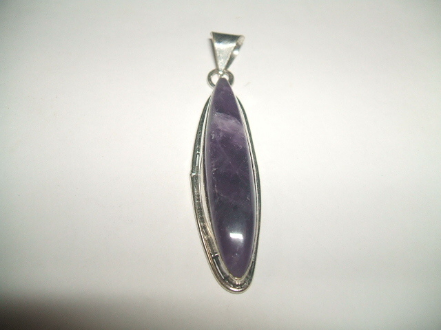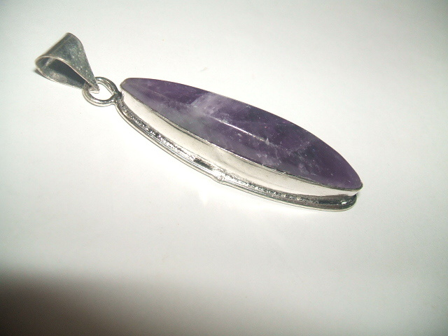細長いマーキース型のアメジストトップです。石の大きさは4x0.7センチ。金属はシルバーで925の刻印があります。