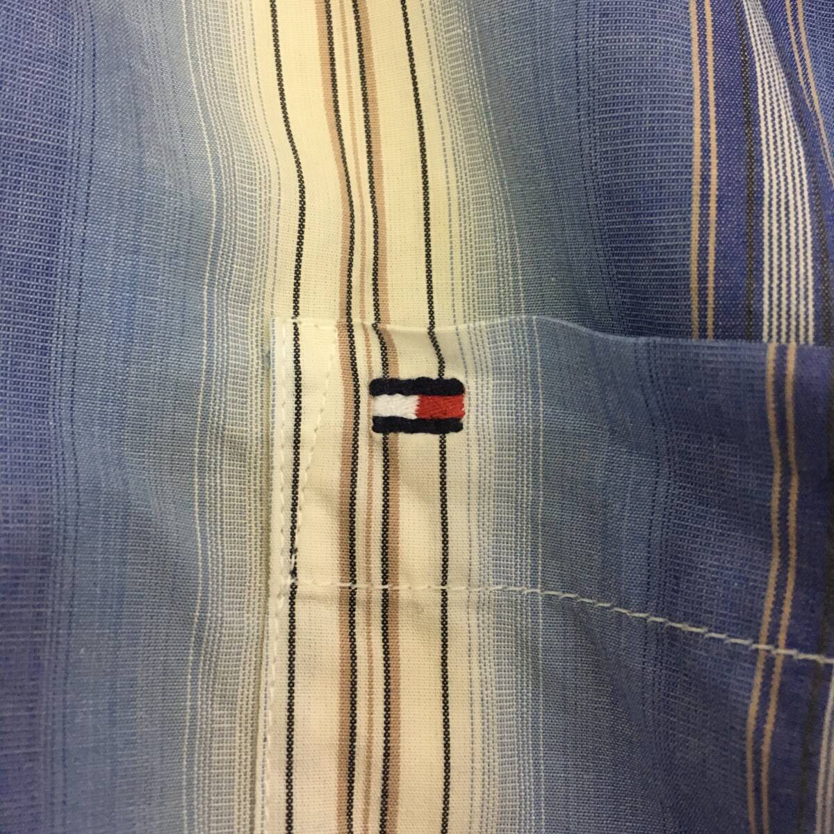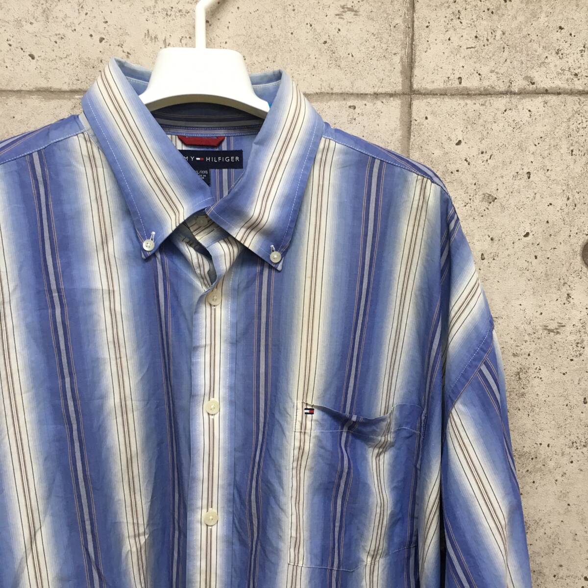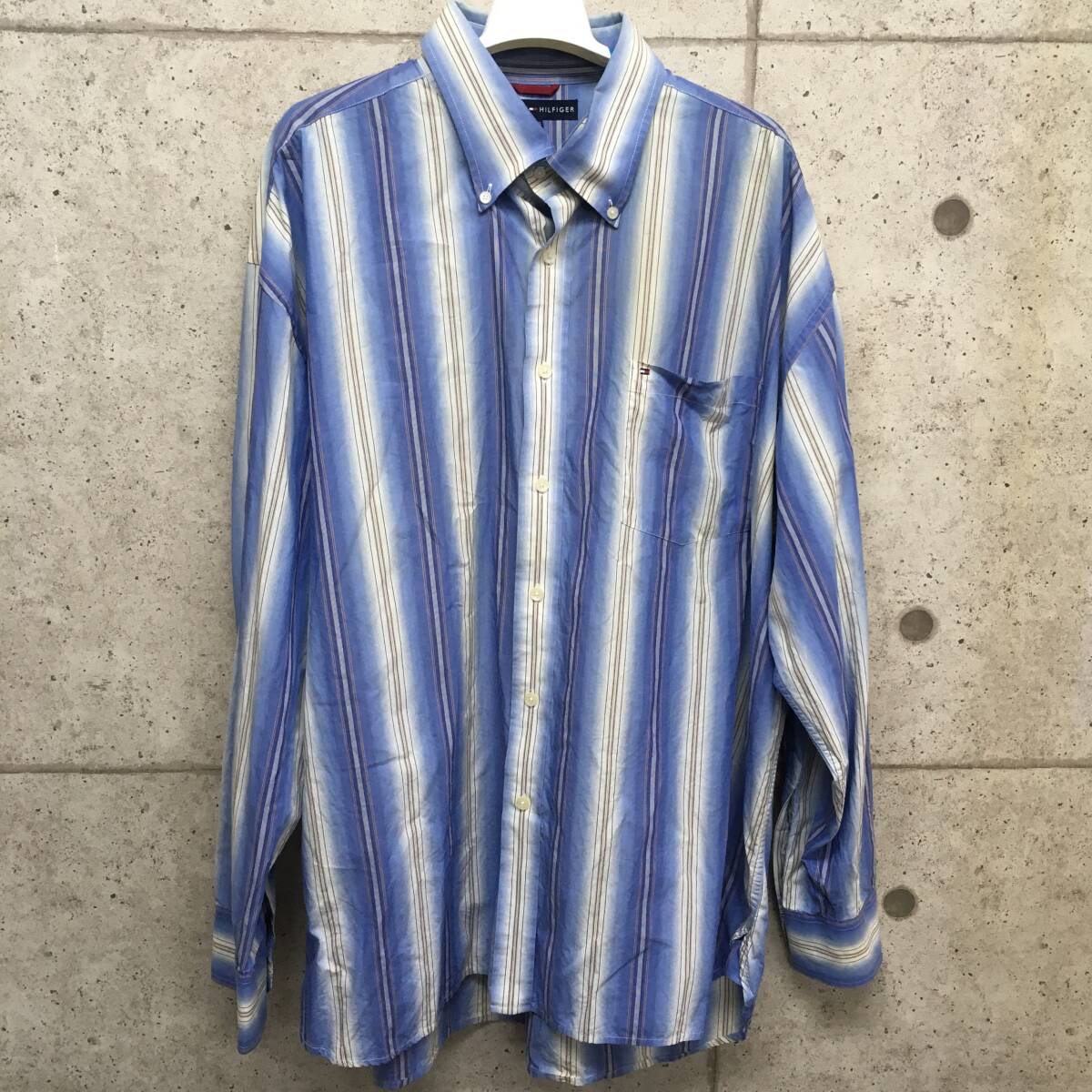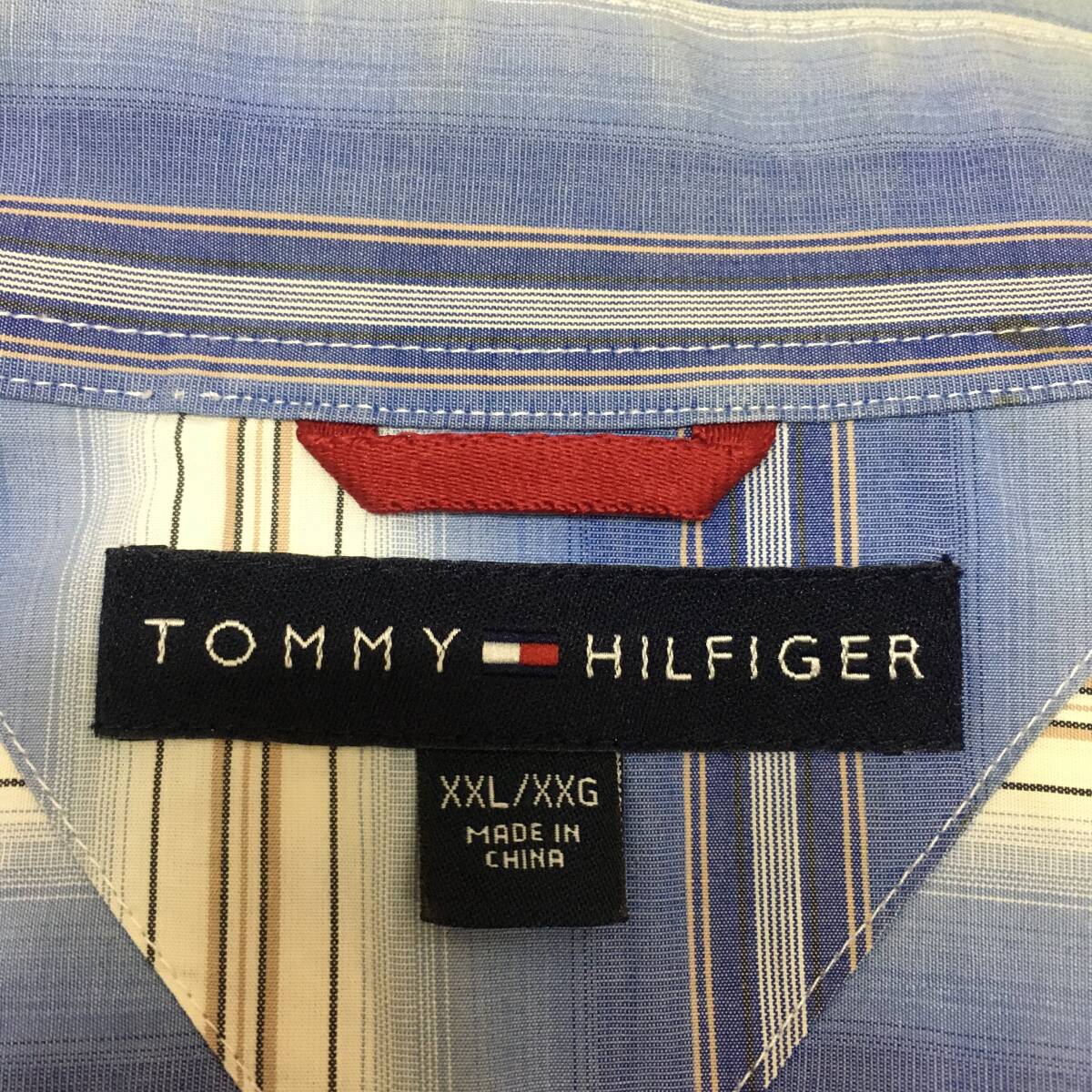中古 アメリカ古着 TOMMY HILFIGER トミーヒルフィガー 長袖シャツ メンズ XXL 2L LL 青白 ブルー ビンテージ カジュアル 送料無料