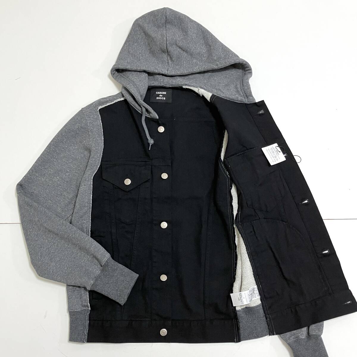 CABANE de ZUCCa デニム スウェット ドッキング ジャケット ブラック × グレー