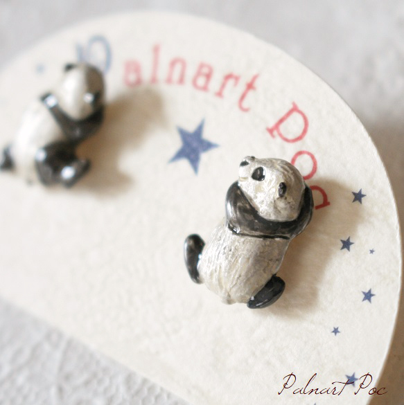 パンダさんのアクセサリーシリーズ『子パンダ ピアス』です。