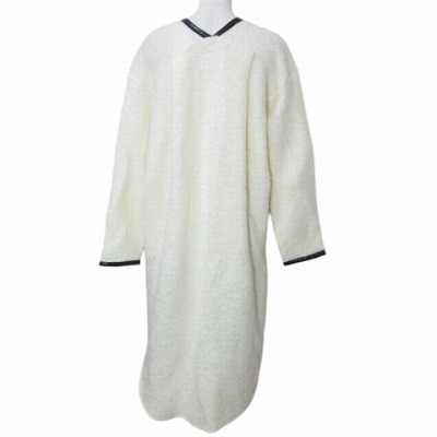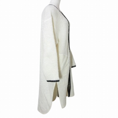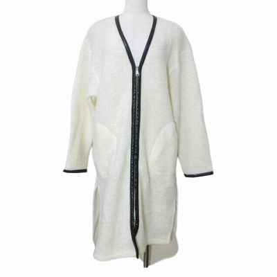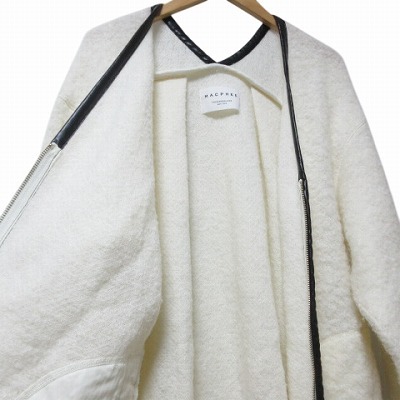 マカフィー MACPHEE トゥモローランド ウールナイロンループボア ロングコート ノーカラー ジップアップ パイピング 36 M相当 白 黒 IBO70