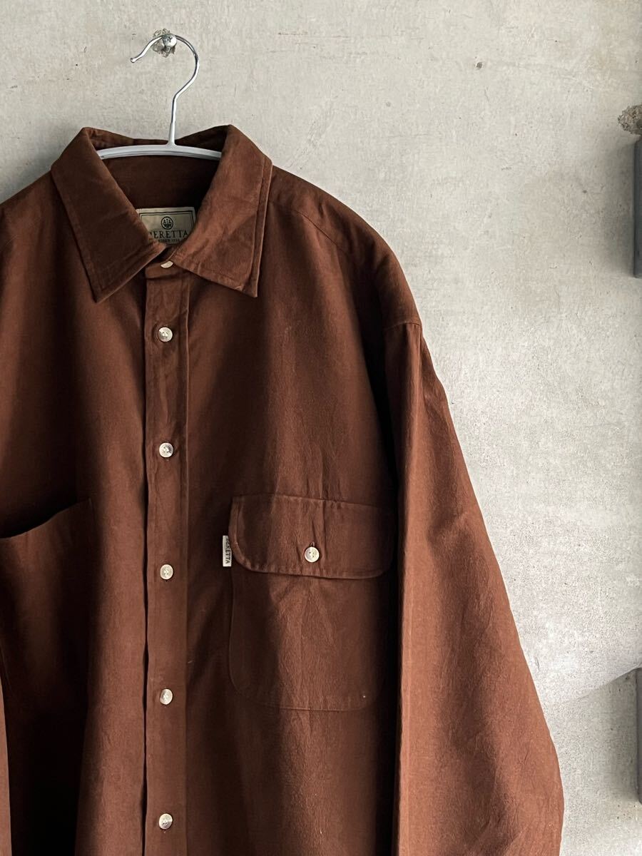 70s 70年代 80s 80年代 ビンテージ BERETTA ベレッタ ベロア 長袖シャツ インド綿 無地 古着 コットン ブラウン 茶 ビッグサイズ XL レア