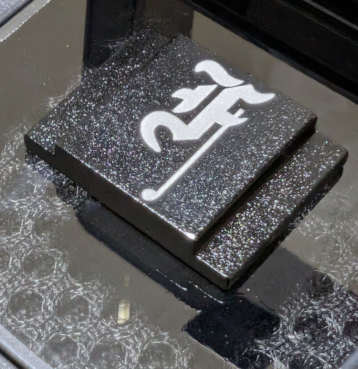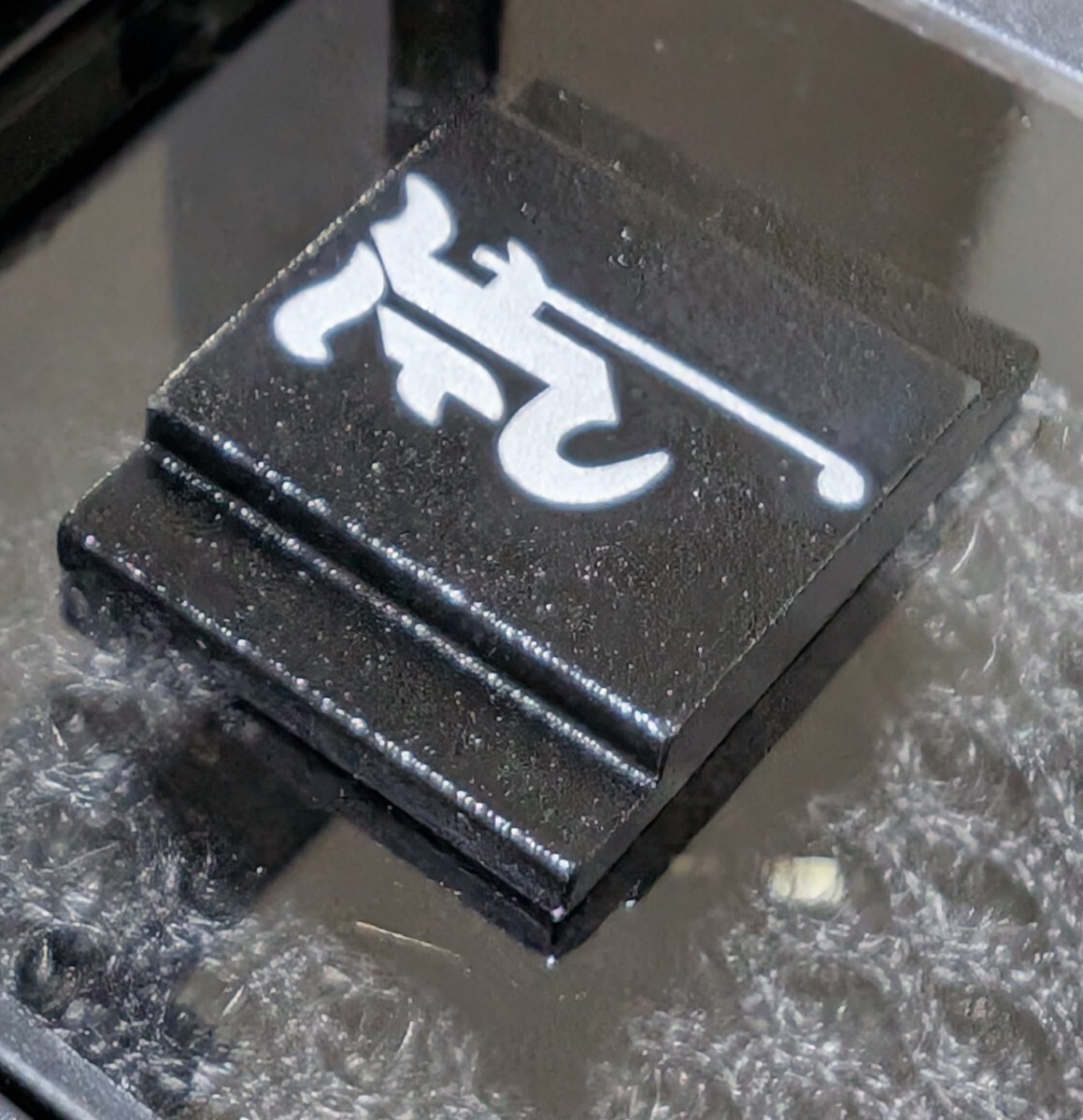 素材はアルミニウムに表面をアルマイト処理したもので、文字は白ペイントです。(彫り込み刻印ではありません)