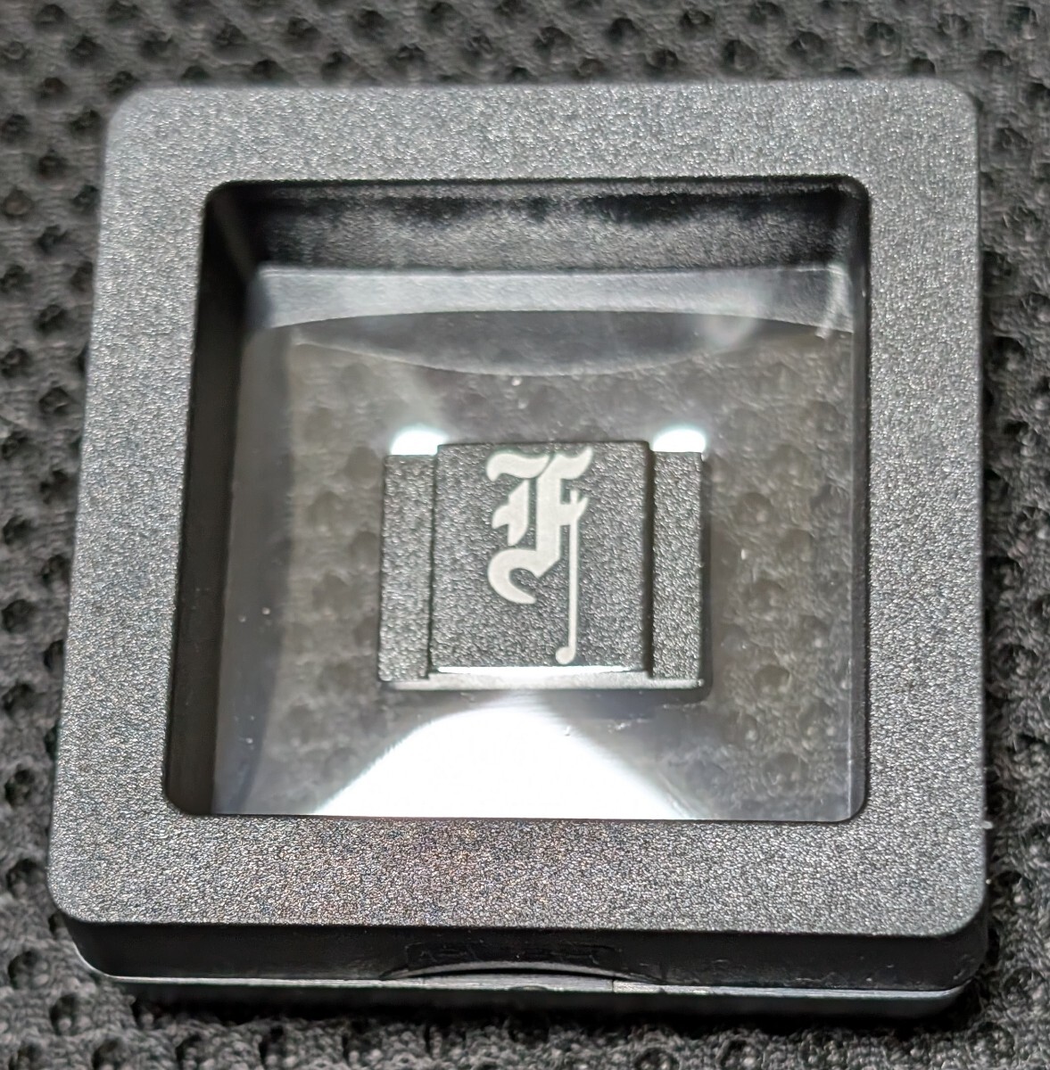 オリンパス ペンF の花文字Fデザインのメタルアクセサリーシューカバーブラックの出品です。非純正品