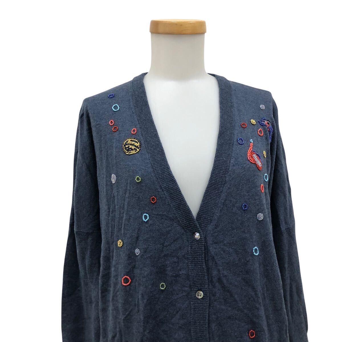 NC310-70 TSUMORI CHISATO ツモリチサト ビジュー ビーズ 刺繍 デザイン ロング カーディガン カーデ 上着 トップス レディース 2 青