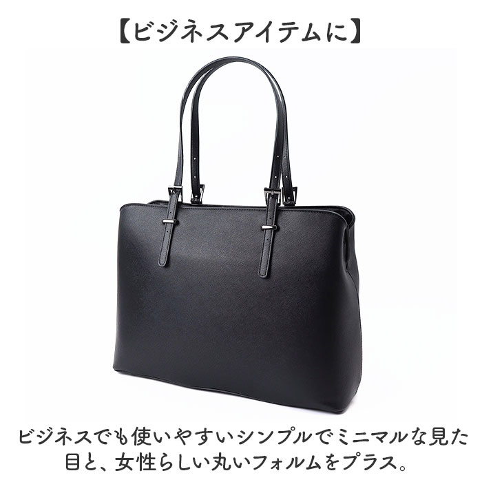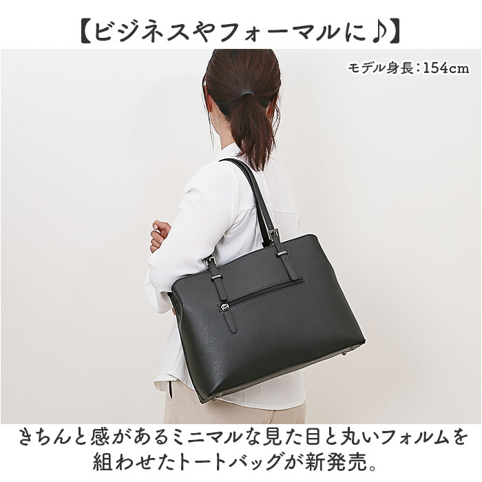 商品説明 | ・・【ビジネスやフォーマルに♪】 ・きちんと感があるミニマルな見た目と丸いフォルムを組わせたトートバッグが新発売。 ・【ビジネスアイテムに】 ・ビジネスでも使いやすいシンプルでミニマルな見た目と、女性らしい丸いフォルムをプラス。 ・【学校行事の参列や説明会にも】 ・A4対応サイズで、案内書や手続きの書類も収納可能。 ・【光沢感を抑えたマット調】 ・光沢感が少なく落ち着いた印象の角シボ加工済み。マットかつレザー調の見た目がGOOD。 ・【用途や種類で仕分けて収納】 ・中央のメインルームの他、前後に2つのあおりポケットを設け仕分けて収納可能。 ・【小物ポケット充実】 ・オープンポケットやファスナーポケットはもちろん、ペン挿しも付いた機能的な作り。 ・【立てたまま収納可能】 ・ペットボトルや水筒も立てて収納できるホルダーもメインルームに搭載。 ・【定期やスマホ入れに】 ・スマホや定期入れが丁度よく収まるサイズのポケットを背面に配置。 ・【調節ができる肩掛けハンドル】 ・ハンドルは肩掛けができる長さ。アウターの種類や自分のサイズに合わせて調節可能。 ・【自立ができて置き場所困らず】 ・しっかりとした作りで、自立が可能。面接や説明会などで置き場所に困らない◎ ・【汚れが底に付きにくい】 ・底鋲付きなので、バッグ底面に汚れが付きにくいのも嬉しいポイント。 ・【ポケット仕様】 ・メインルーム・・・ファスナーポケット×1、オープンポケット×2、ペン挿し×3、ホルダー×1 ・前あおりポケット・・・オープンポケット×1 ・後あおりポケット・・・オープンポケット×2 ・背面・・・ファスナーポケット×1 |