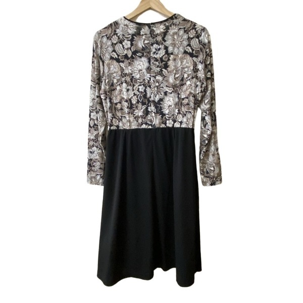 レリアン Leilian サイズ9 M - 黒×ダークブラウン×マルチ レディース クルーネック/長袖/ロング 美品 ワンピース