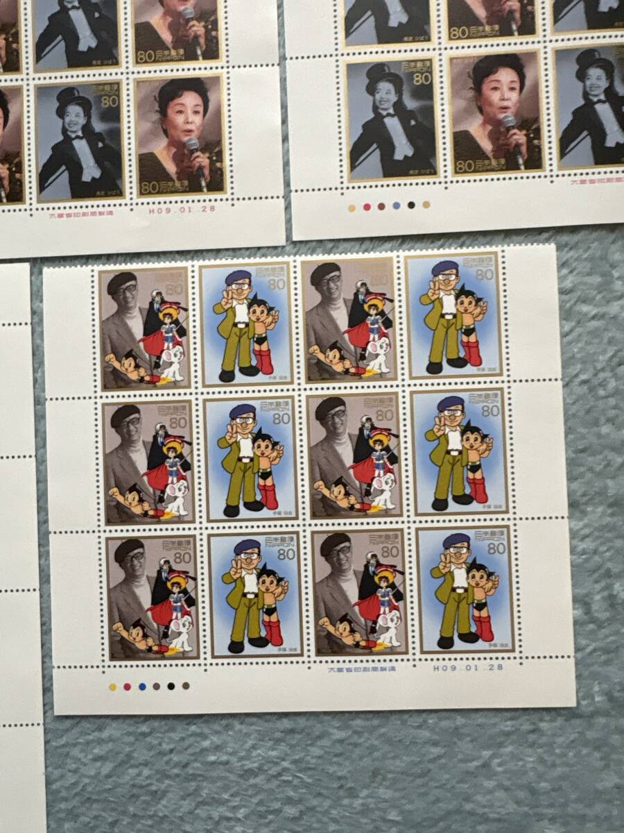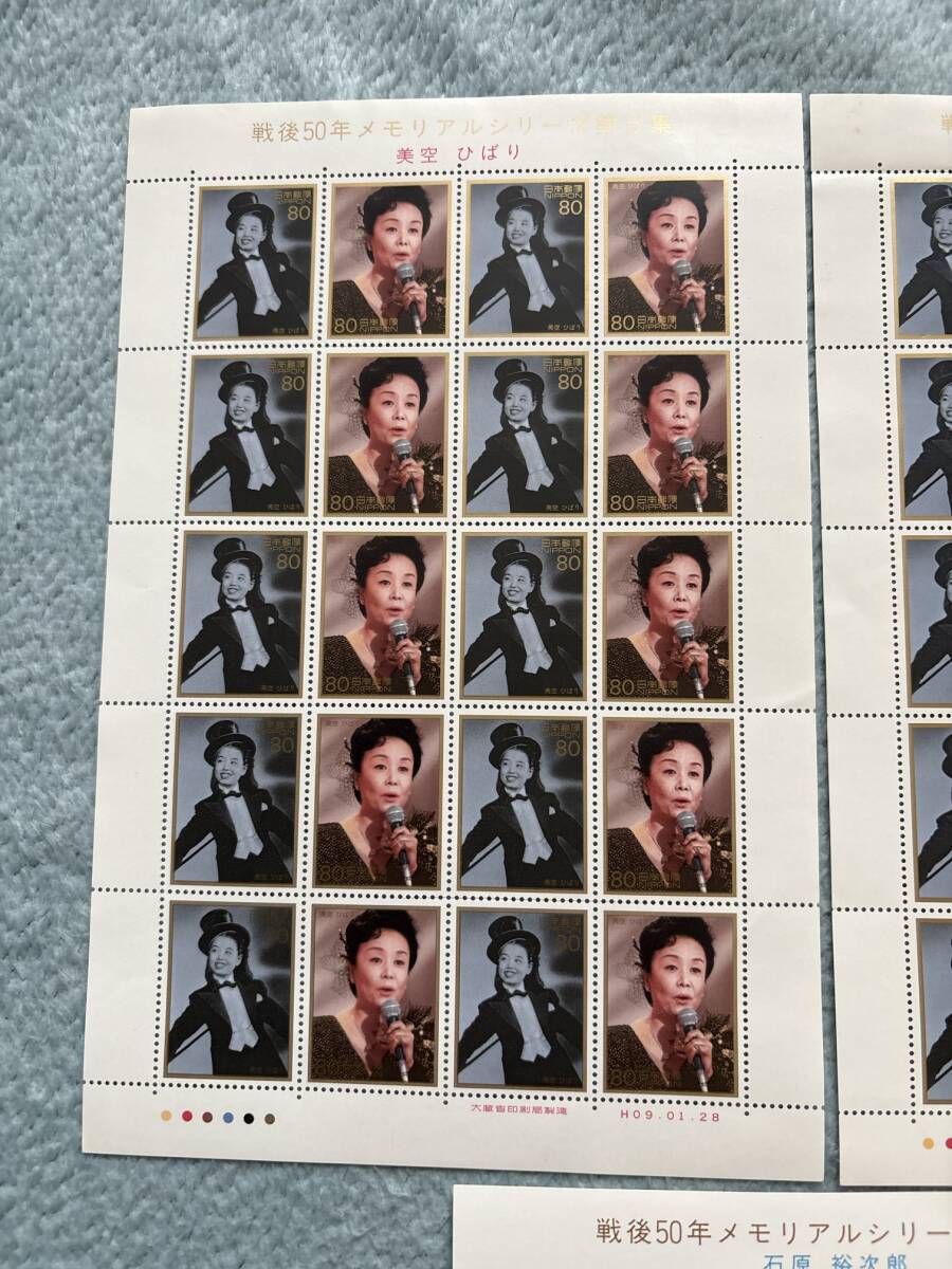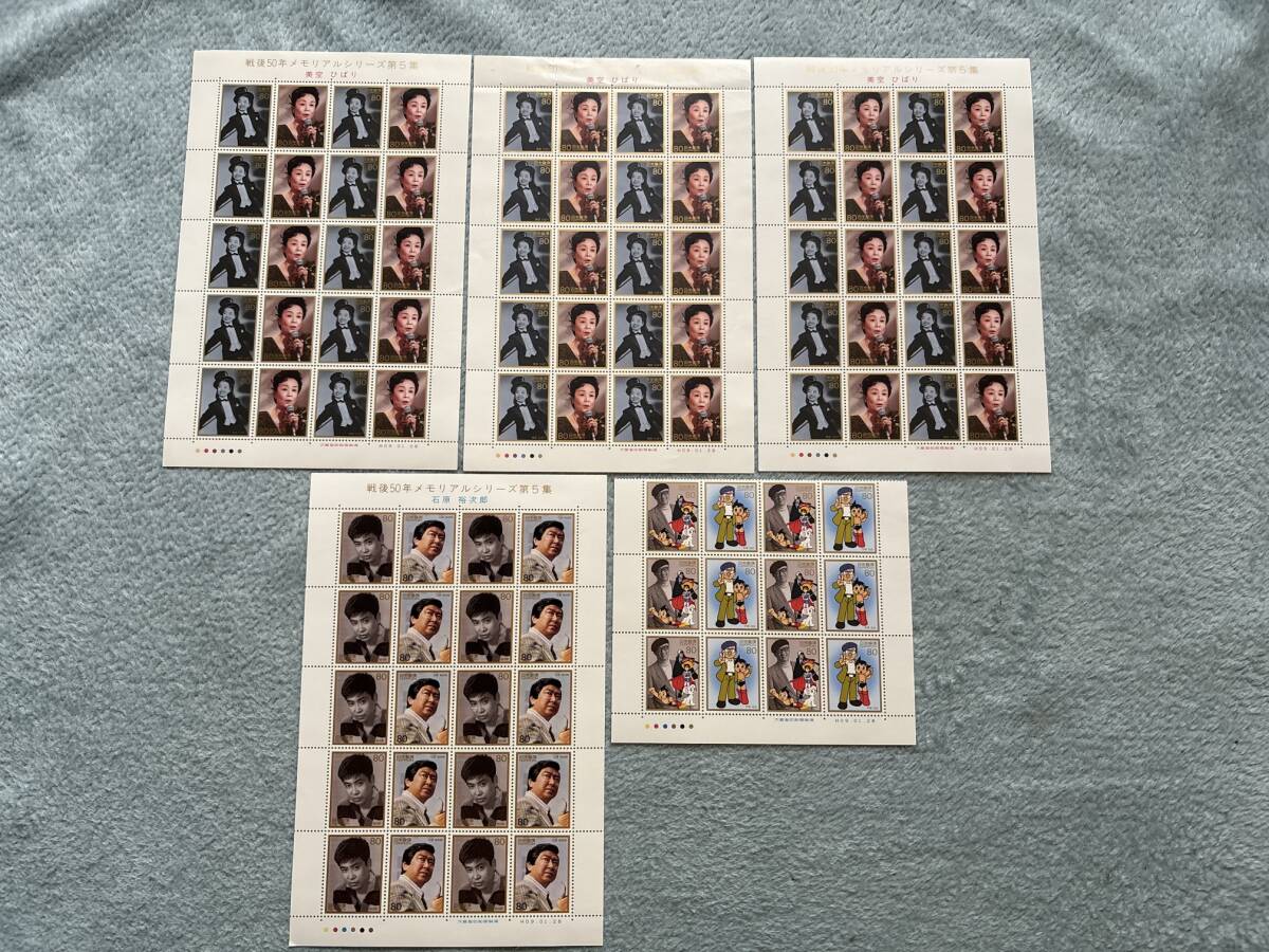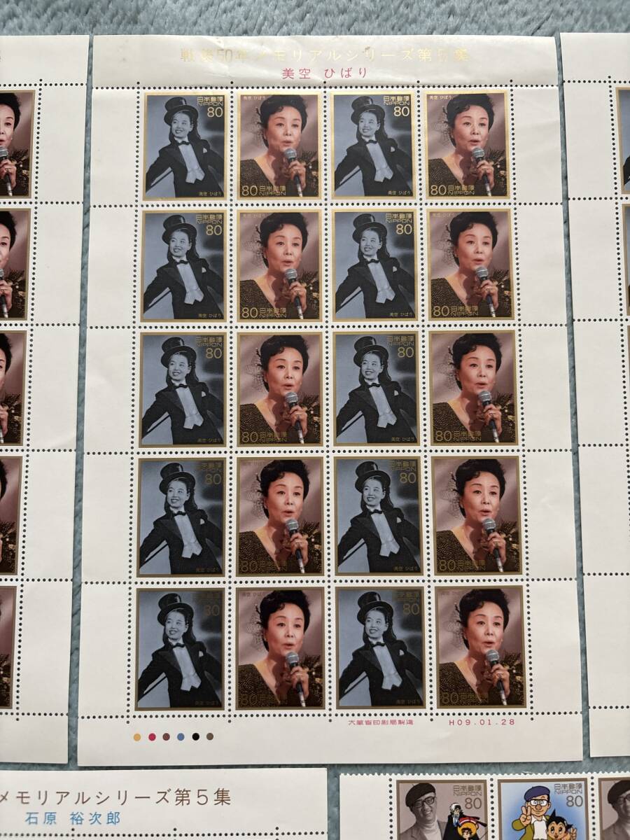 戦後50年 メモリアルシリーズ 第5集 石原裕次郎 美空ひばり 手塚治虫 記念切手 額面7360円分 未使用