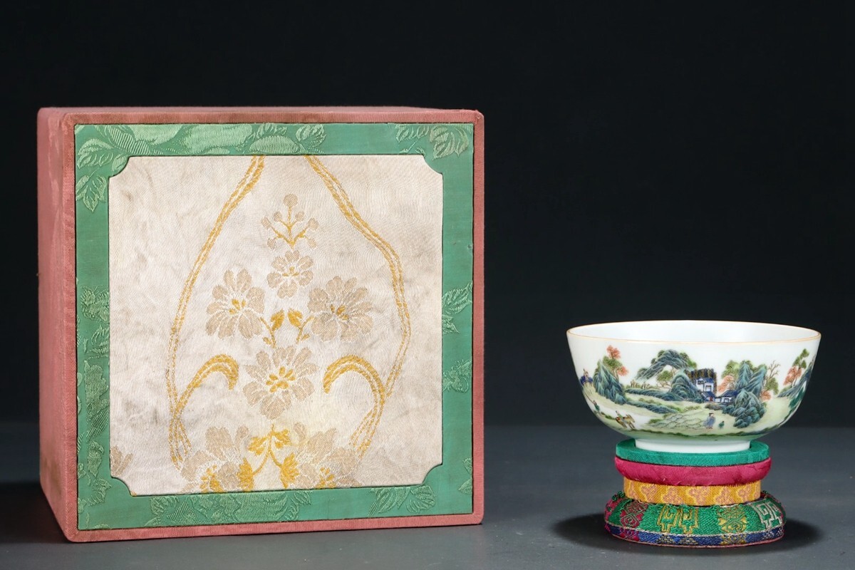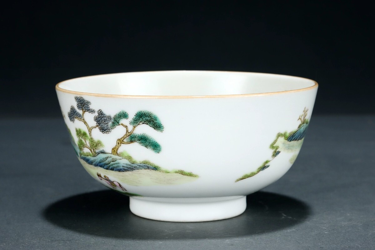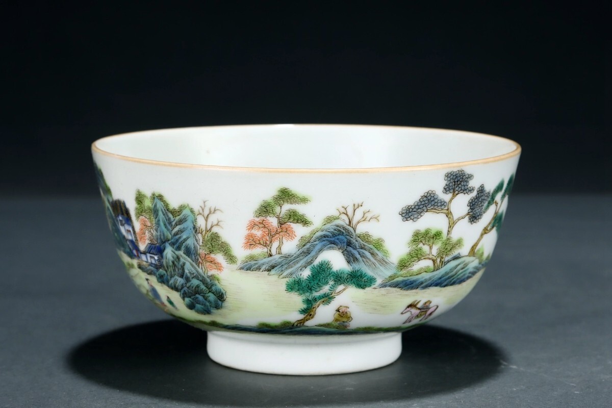 【瓏】陶磁器 粉彩山水人物 碗 大清光緒年製 染付 置物擺件 古賞物 古美術 陶芸 蔵出