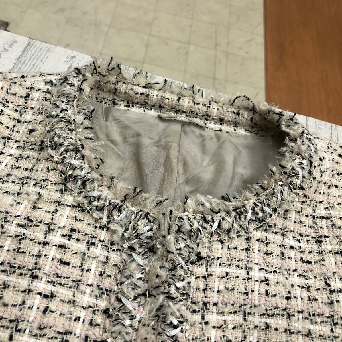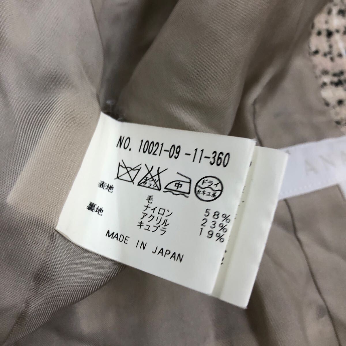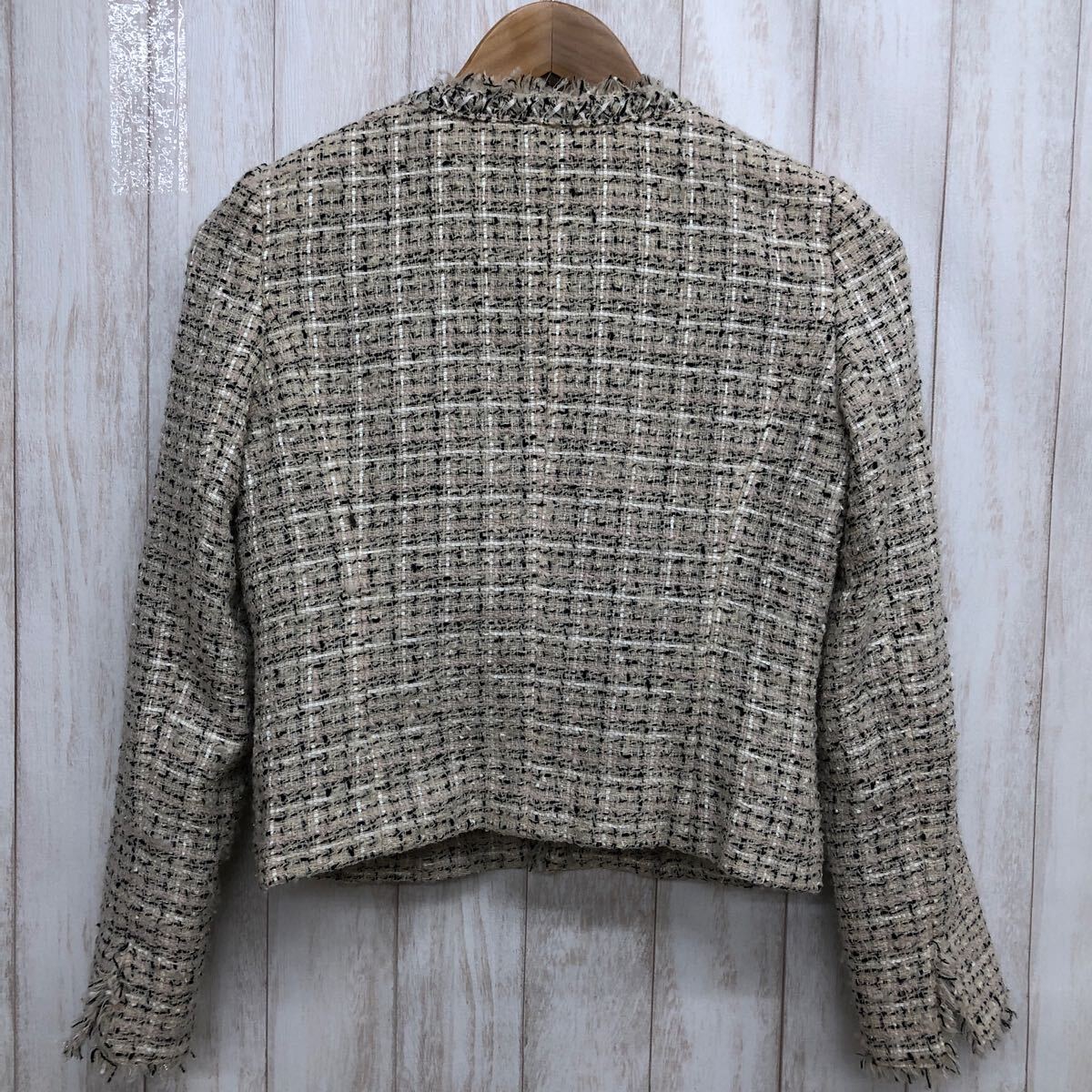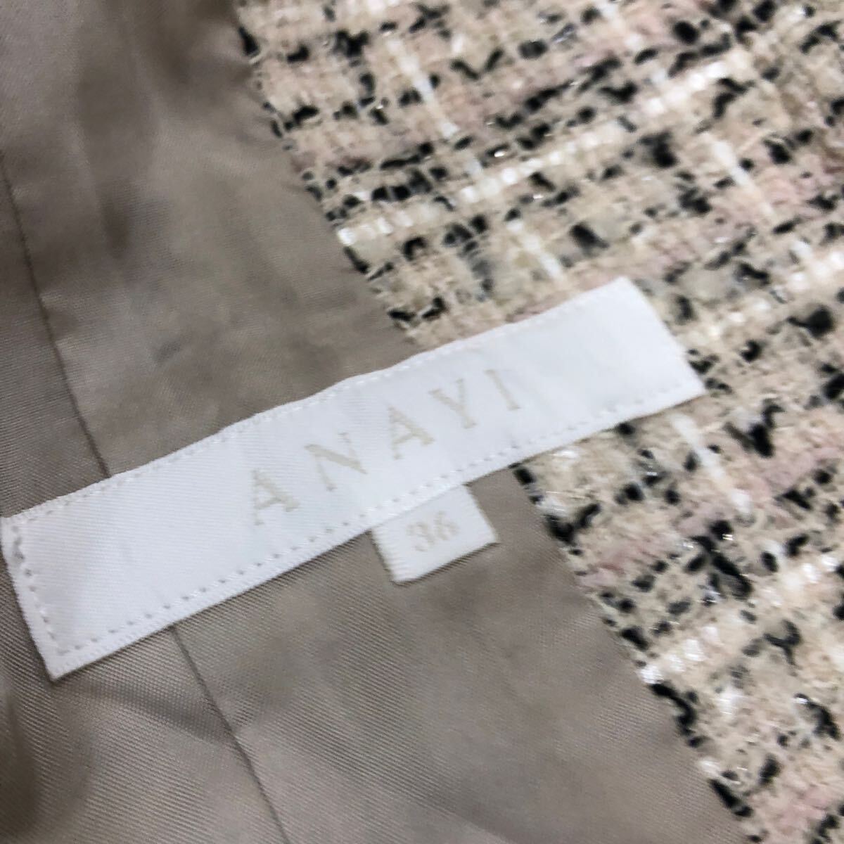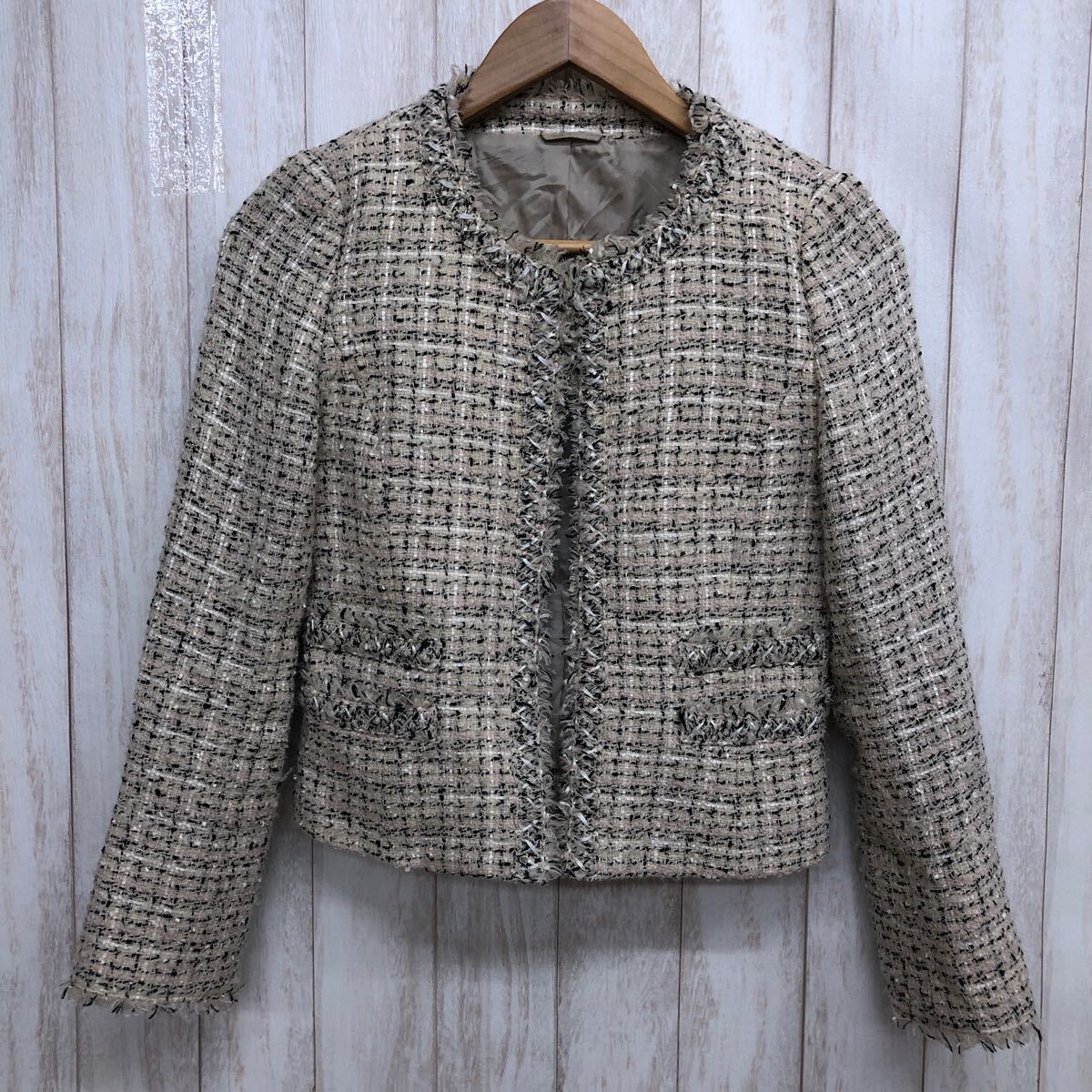 ANAYI アナイ ツイードジャケット サイズ36 ノーカラー ウール 日本製 ベージュ系 レディース YF414
