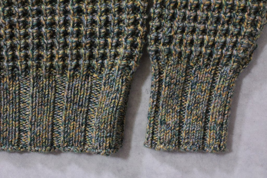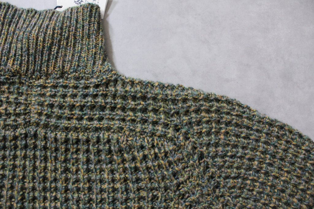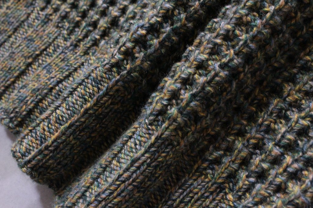 色はグリーンとベージュ、ライトブルーなどをミックスした多色メランジェで、