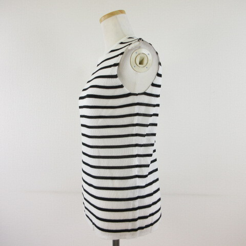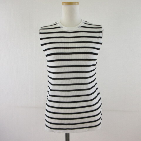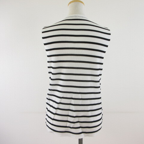 ミラオーウェン Mila Owen シアー サマーニット ノースリーブ ボーダー 白 黒 0 *T467 レディース