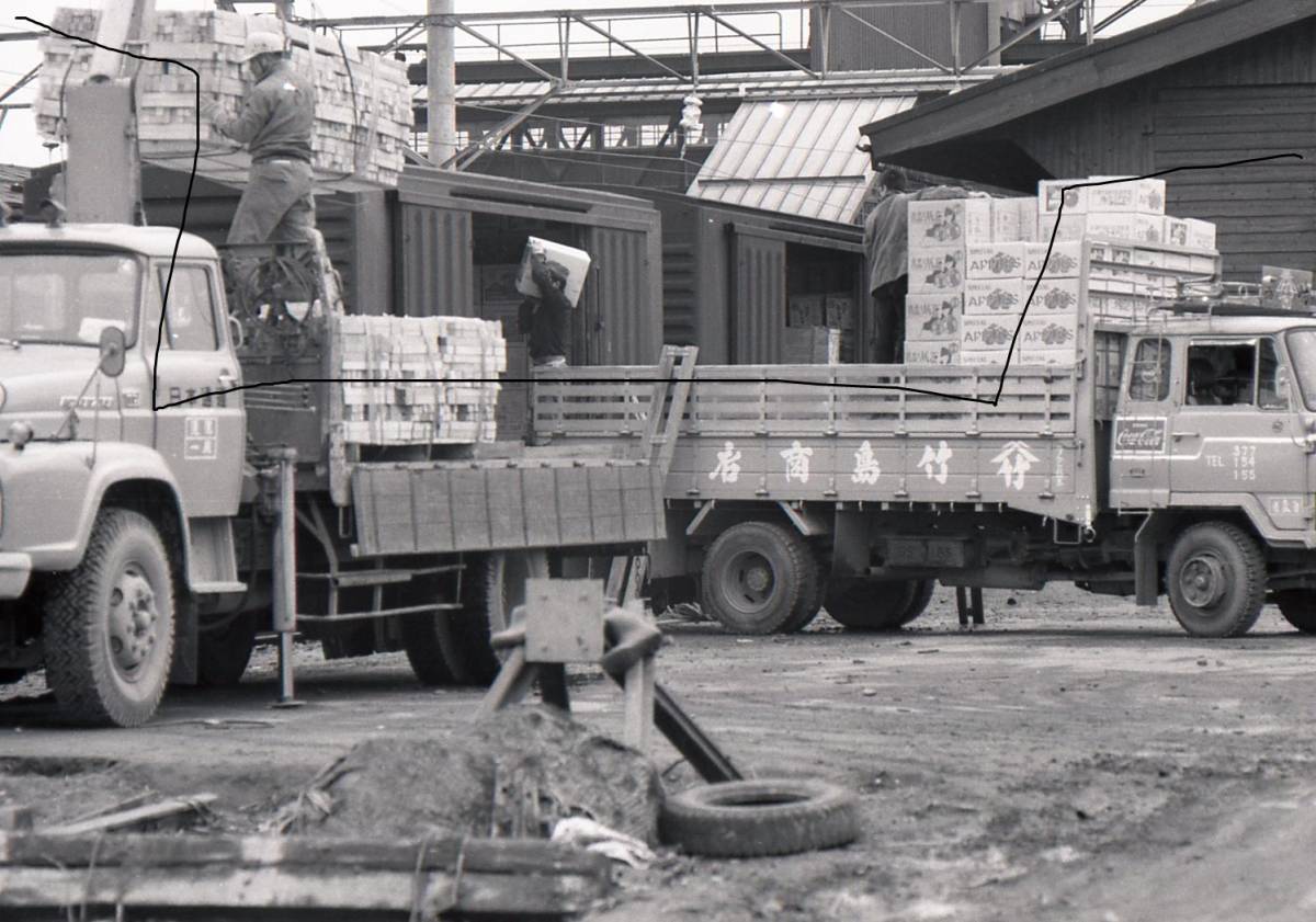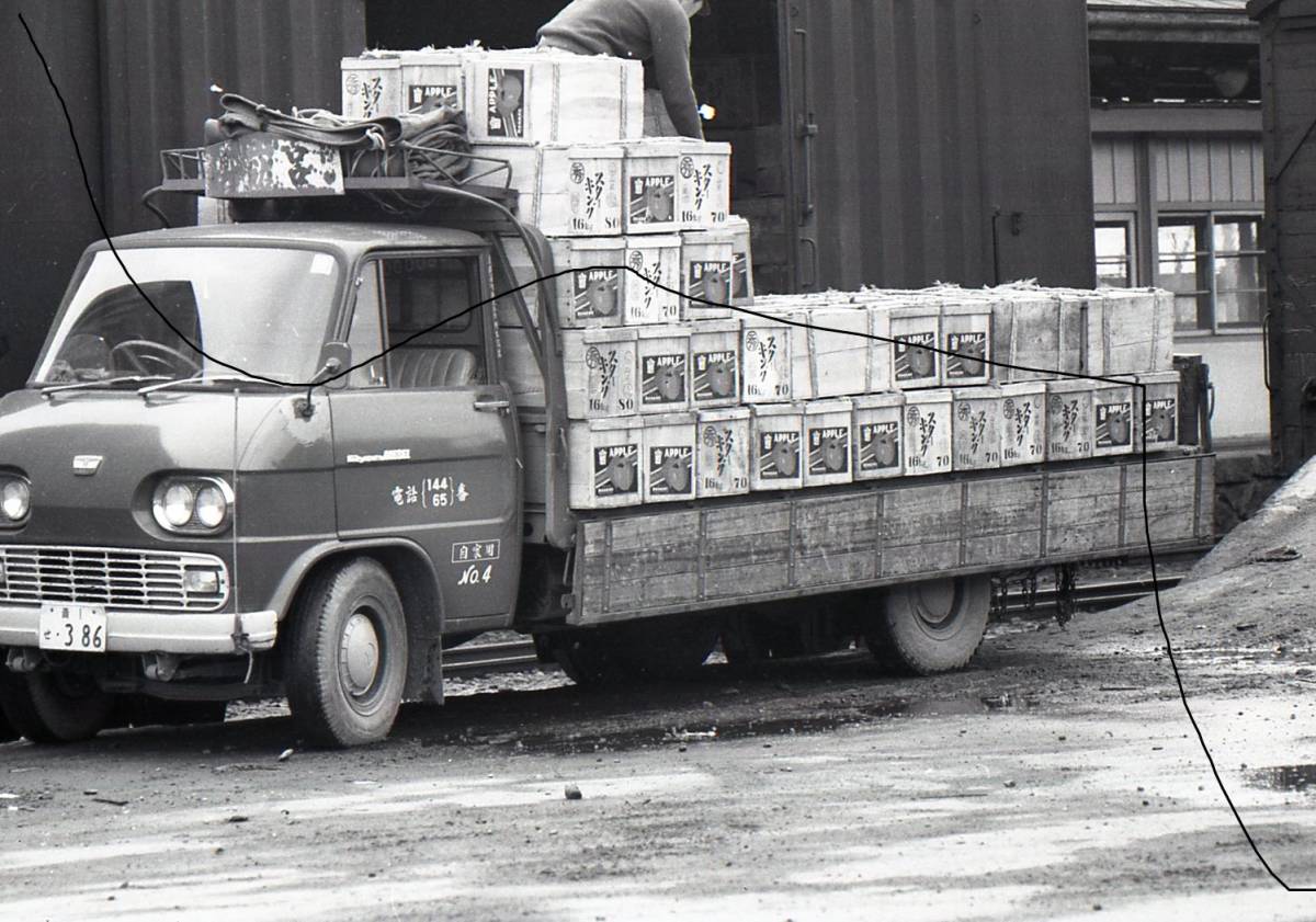 国鉄時代 昭和40年頃? 川部駅 貨車に荷物の積み込み風景 2枚 データをメール添付かCD-Rで。
