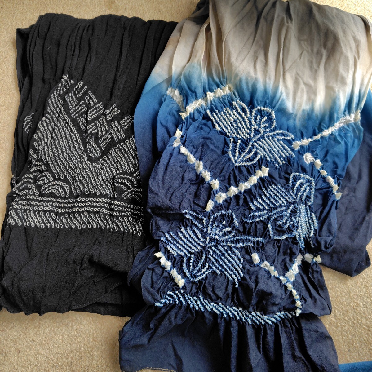 黒は比較的綺麗かと思われますが、青はシミ等ございます。写真でご確認ください。