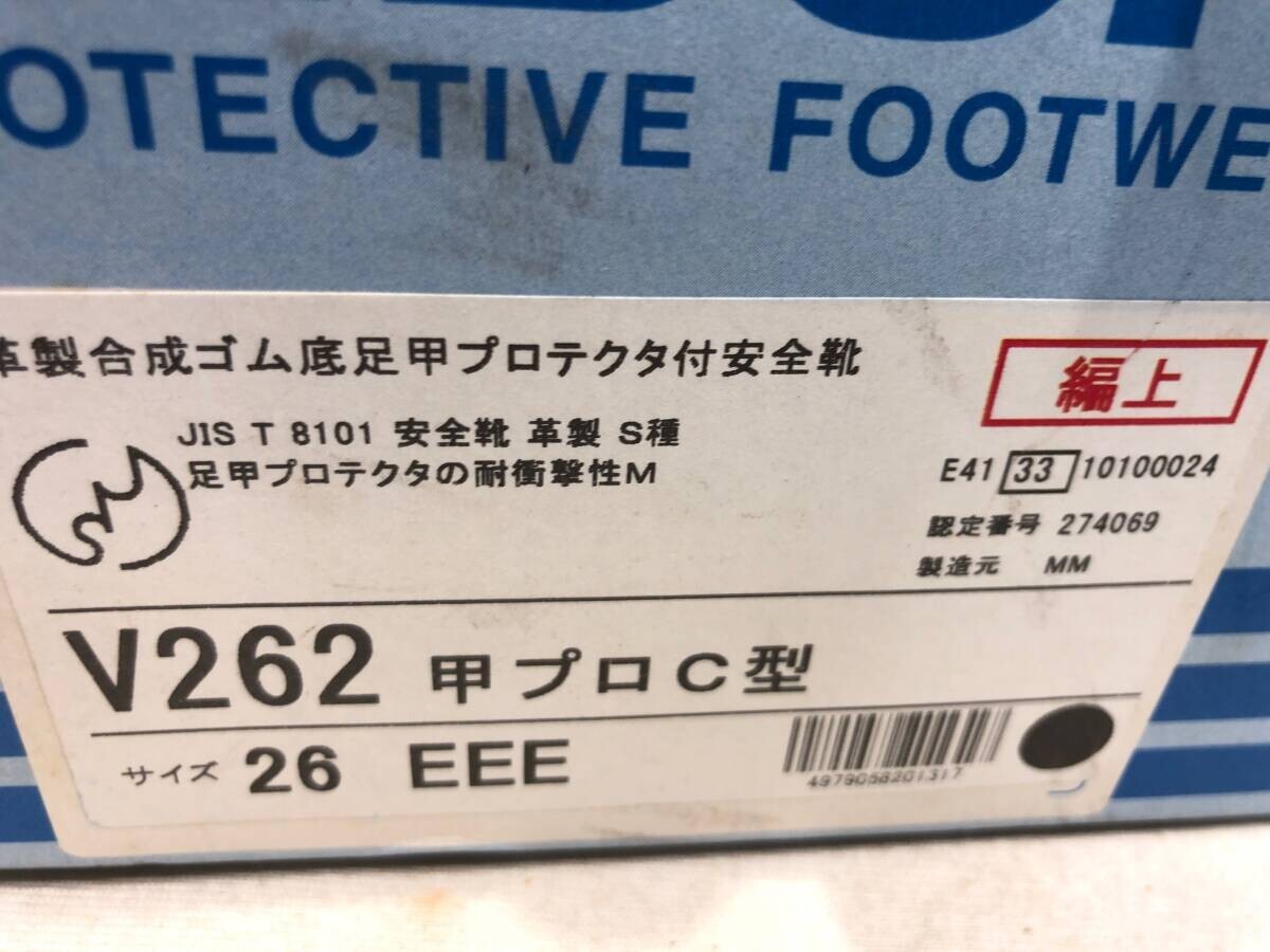 ■14344■未使用■MIDORI安全 26.0cm ミドリ安全 革製合成ゴム底足甲プロテクター付安全靴 V262 26EEE 編上 ブーツ 甲プロC型