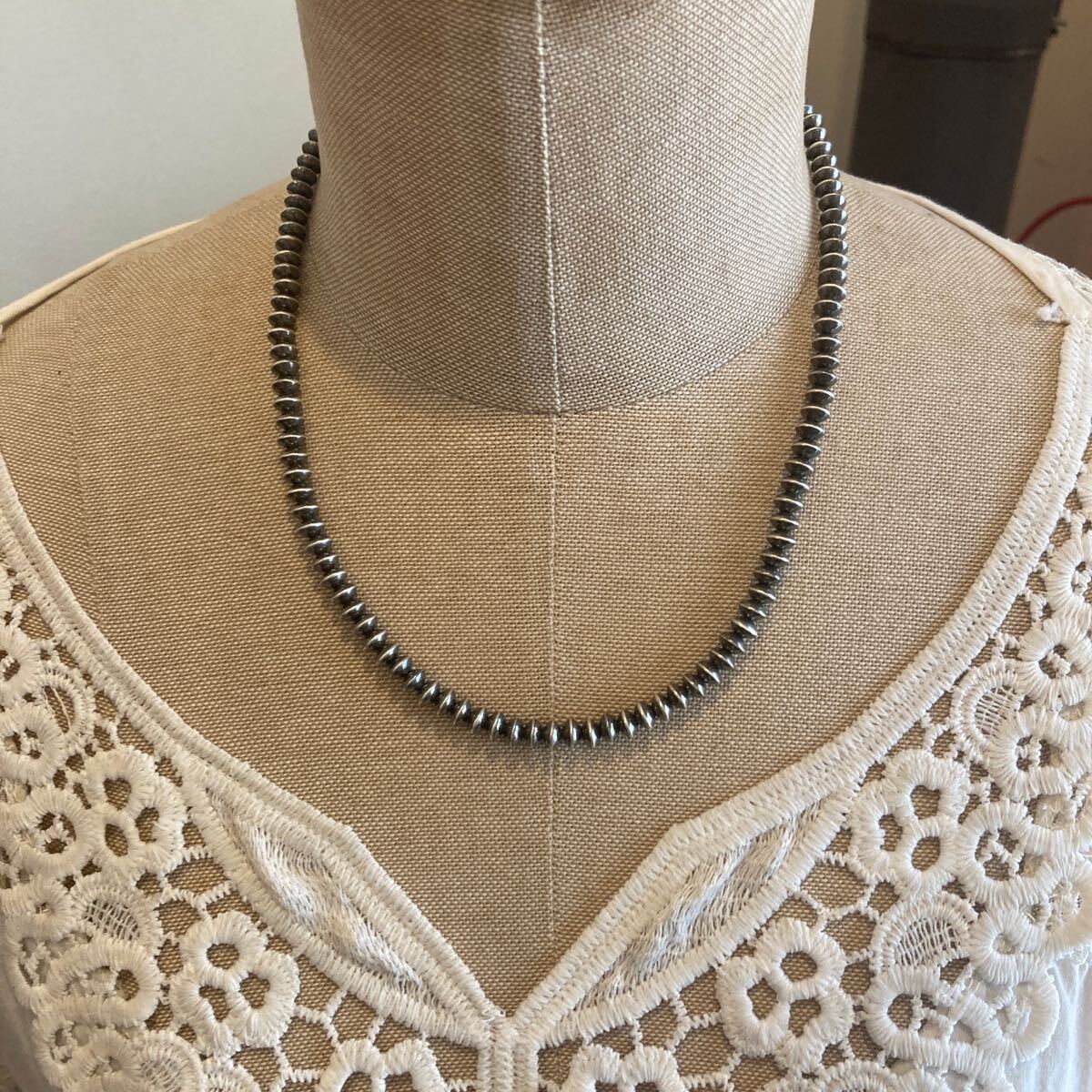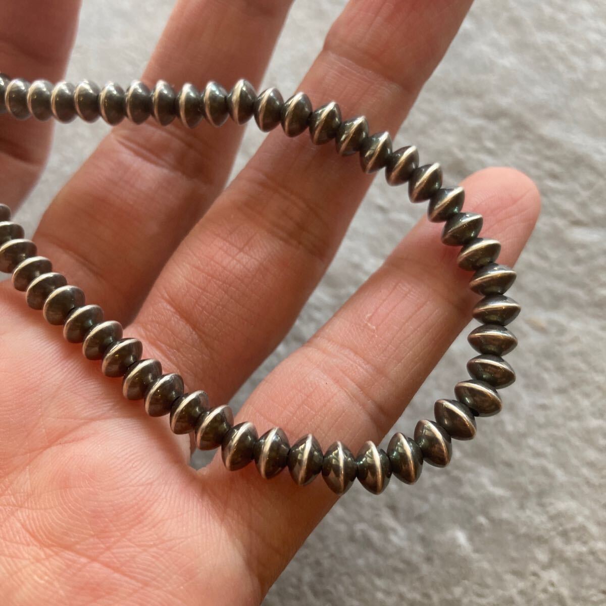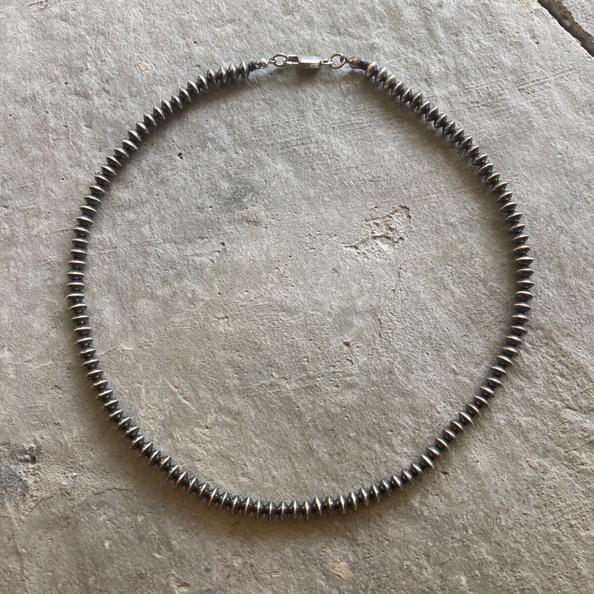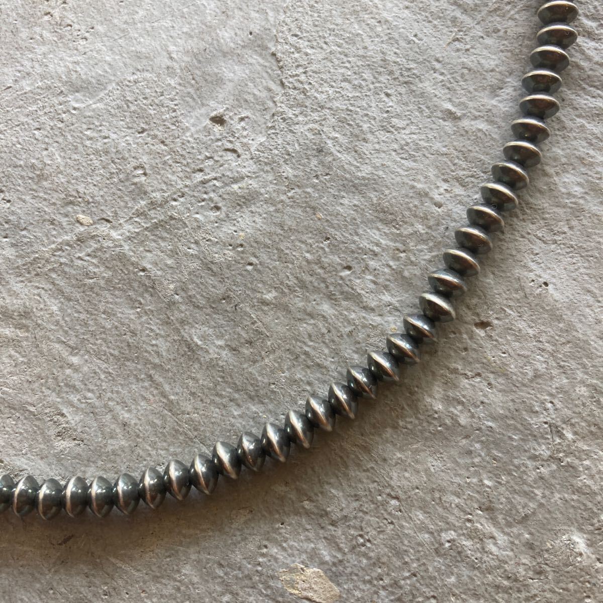 こちらは、約5.8ミリのソロバン型のナバホパールのみのネックレスです。