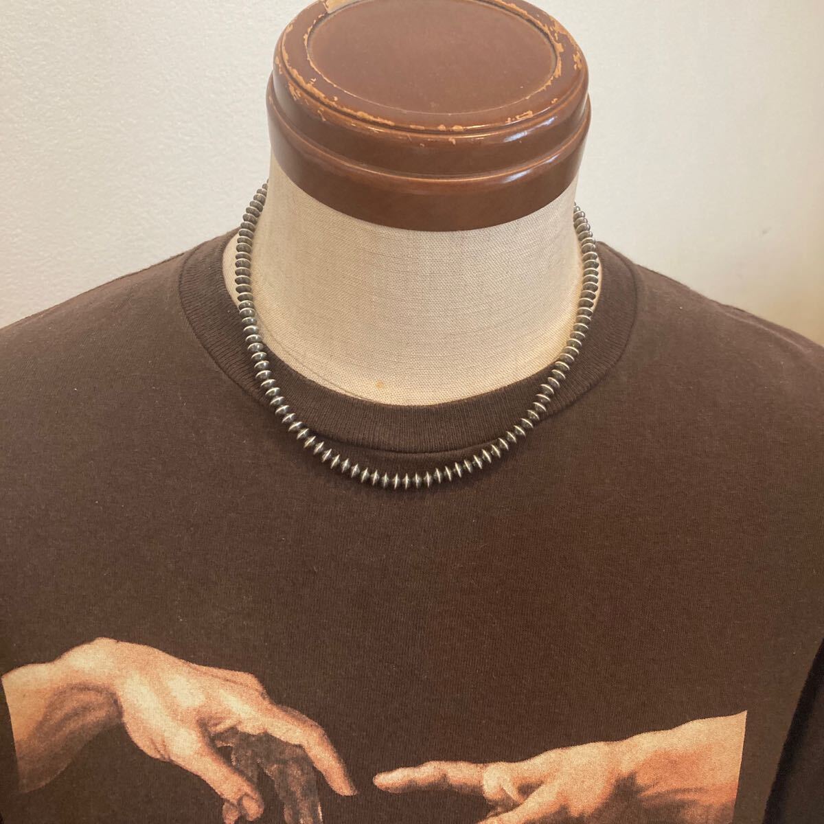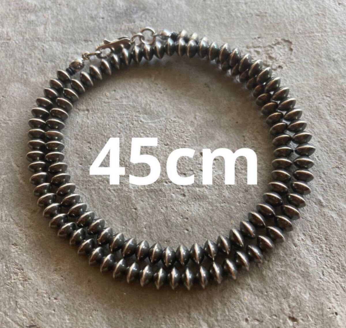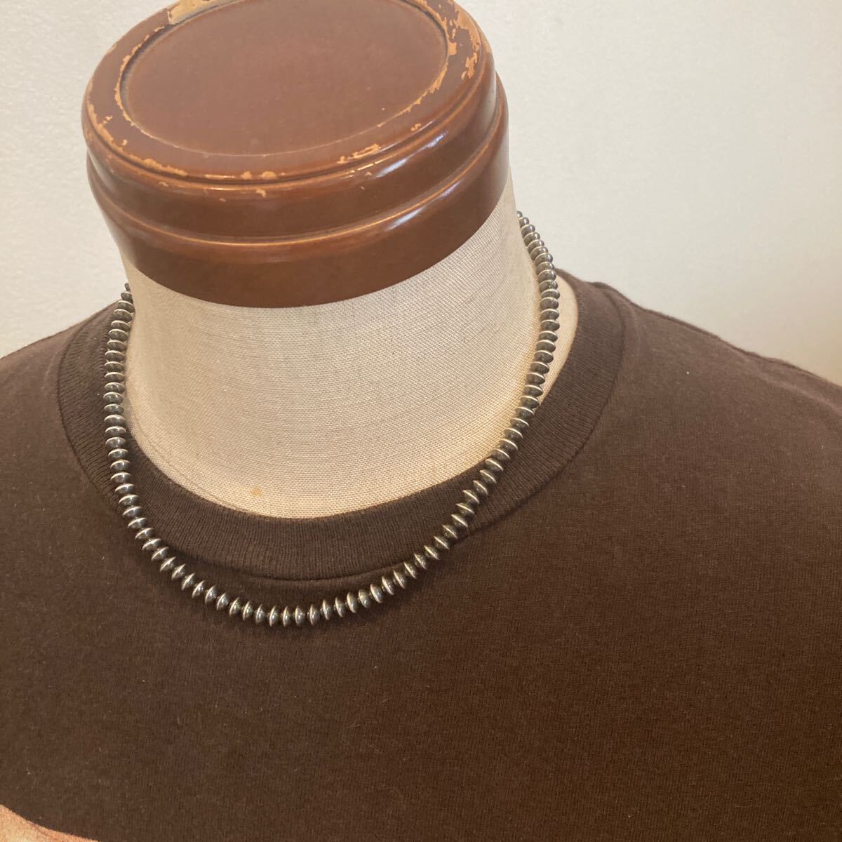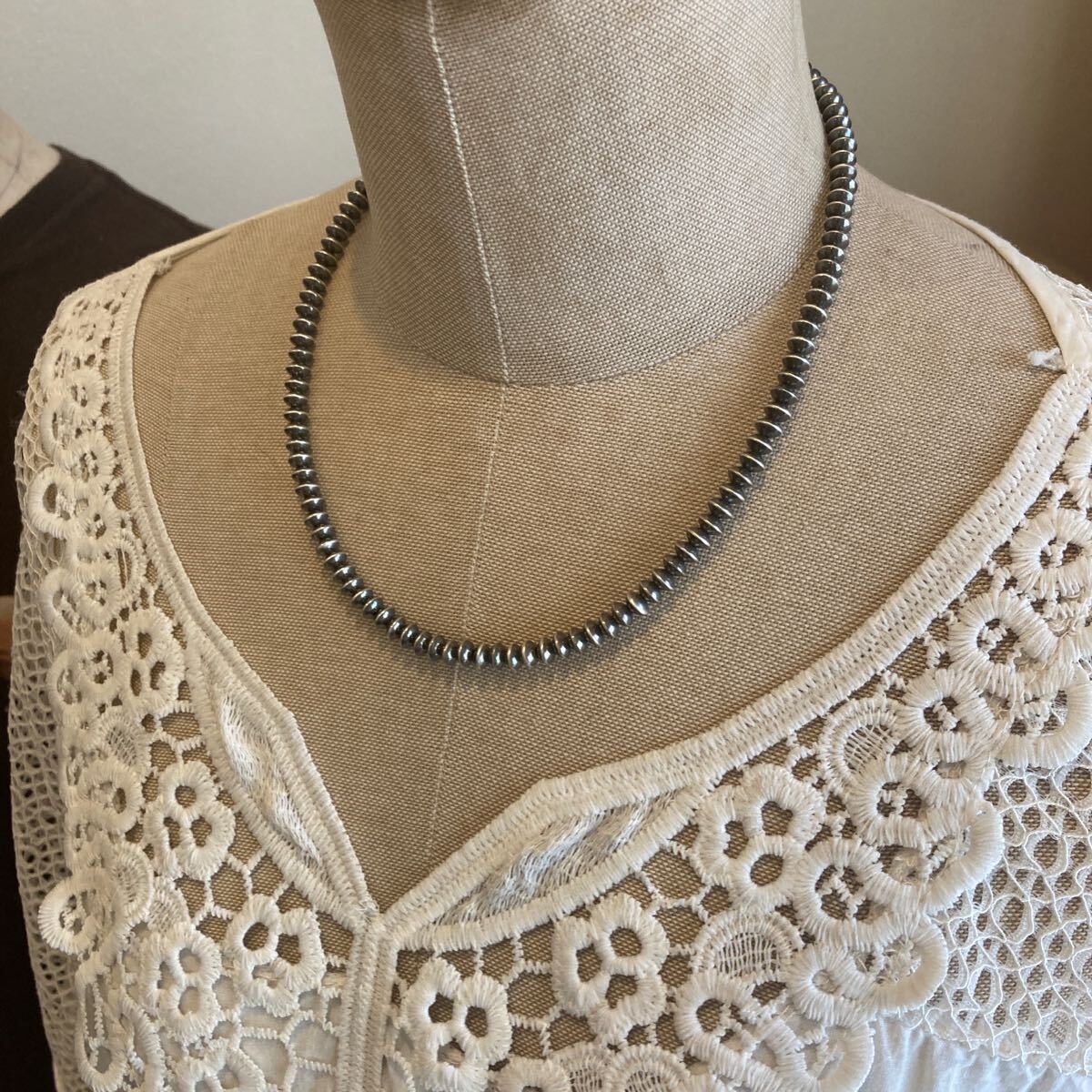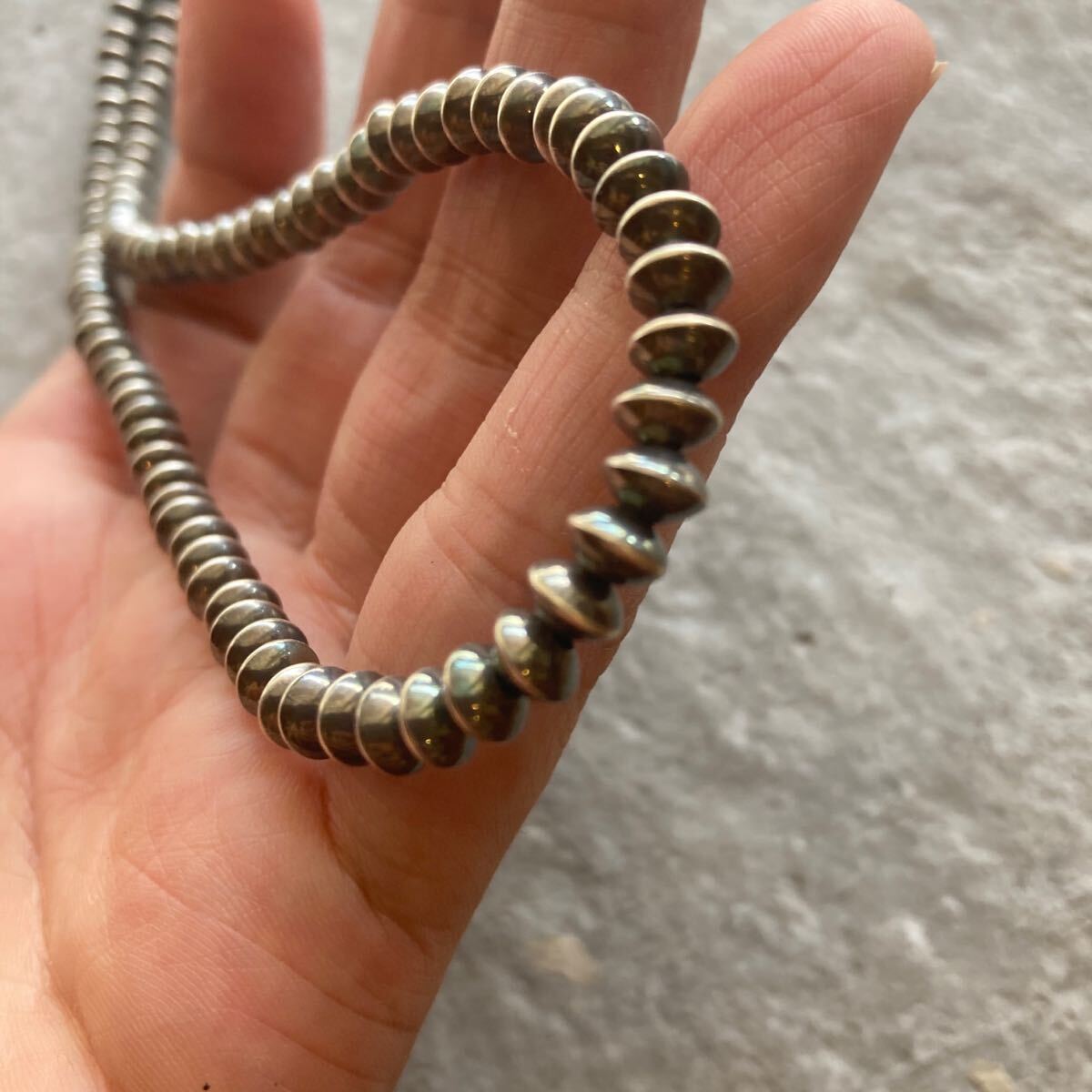 こちらは、約5.8ミリのソロバン型のナバホパールのみのネックレスです。