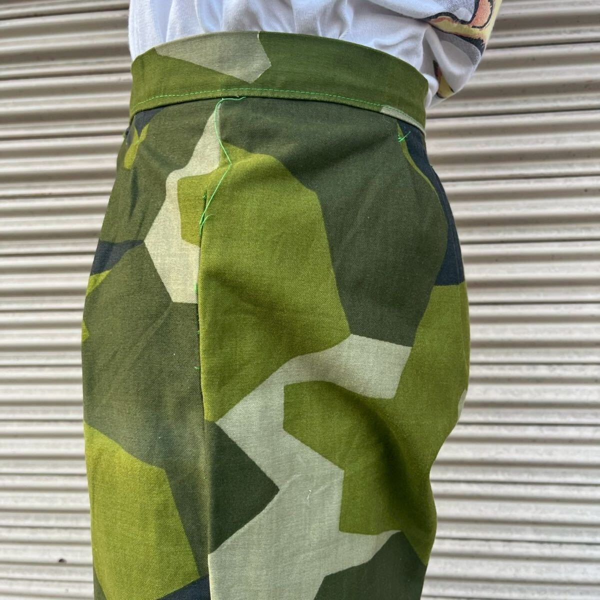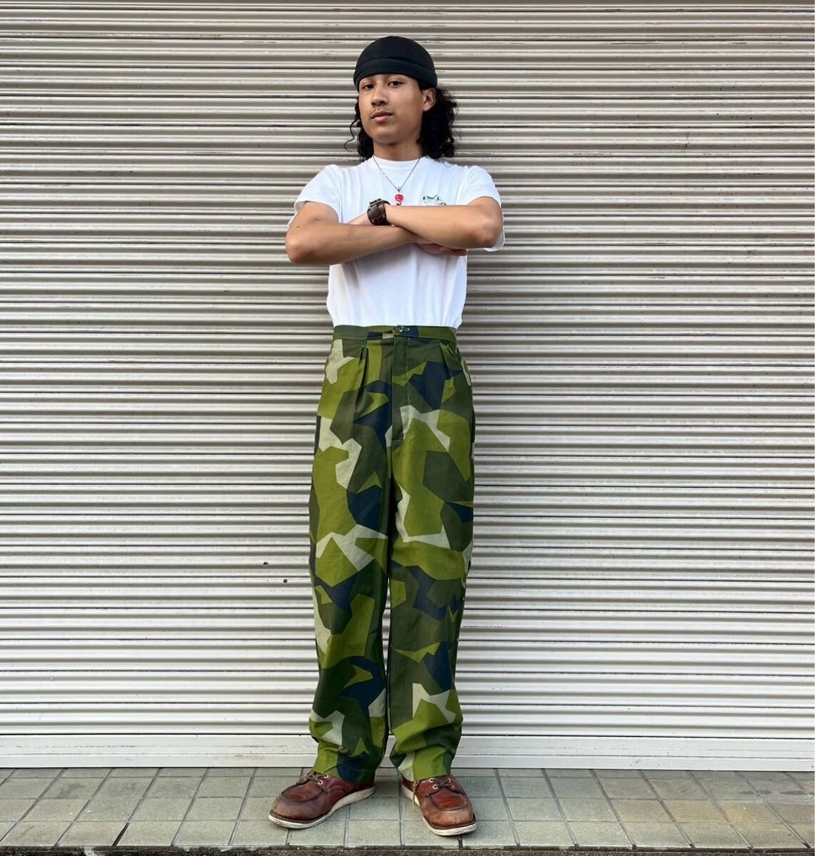 このモデルは、カーゴポケットなしのストレートなシルエットで、無駄のないシンプルな作りの民間品