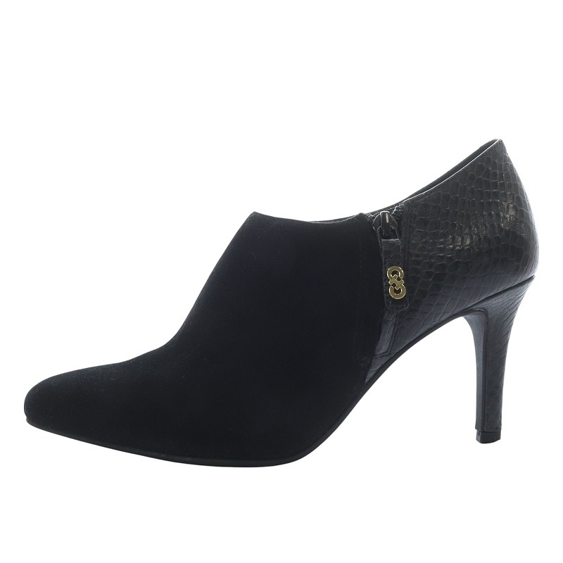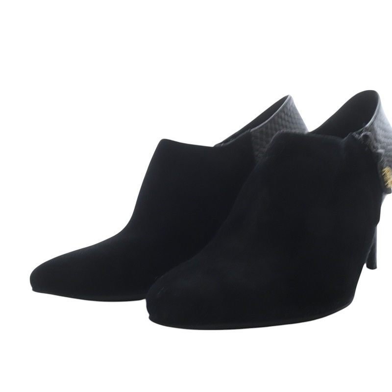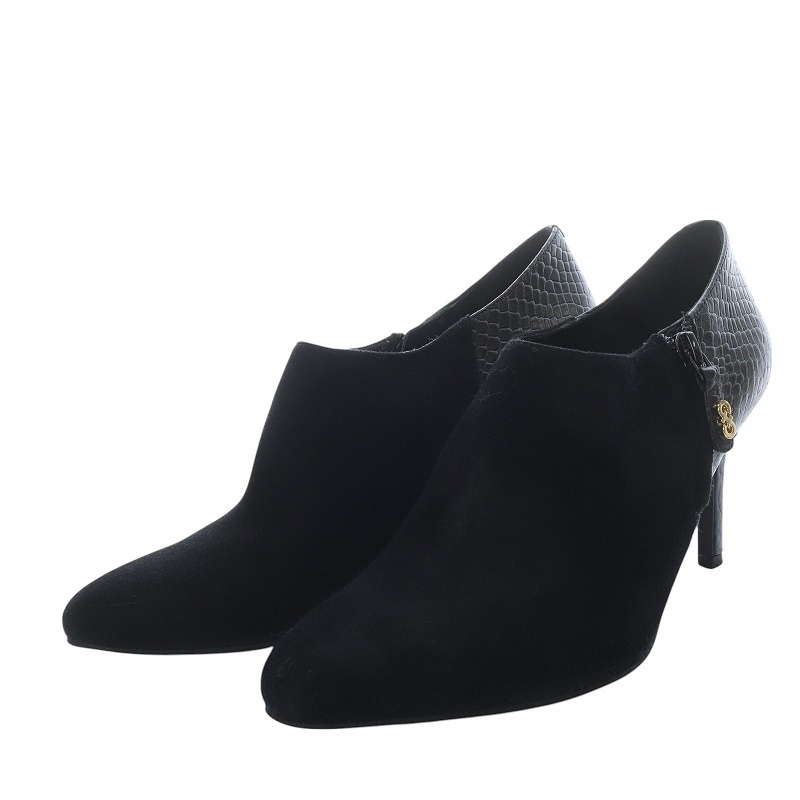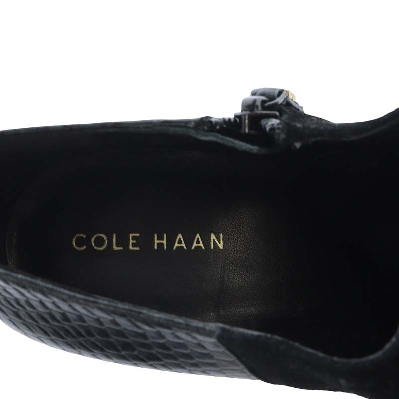 コールハーン COLE HAAN ブーティ 部ーショート ハイヒール 型押し レザー スエード 7B ブラック /YO12 レディース