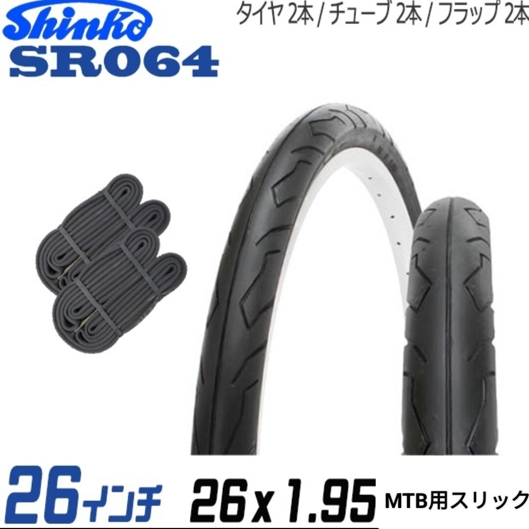 □タイヤ2本+チューブ2本+リムフラップ2本のセット。