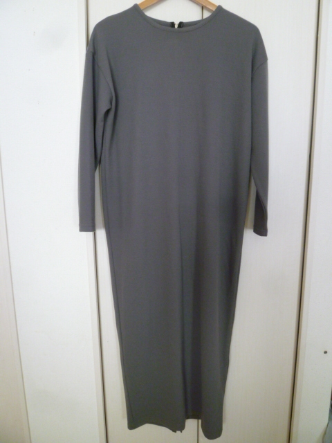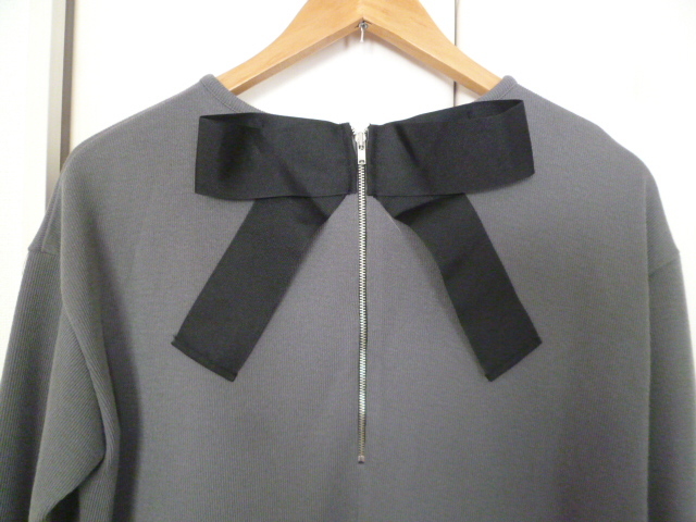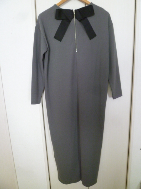 Myu/ミュー◇グレー背中ジップアップリボンデザインロングワンピースFREE/姫系長袖後ろスリットマキシ丈◇OP81