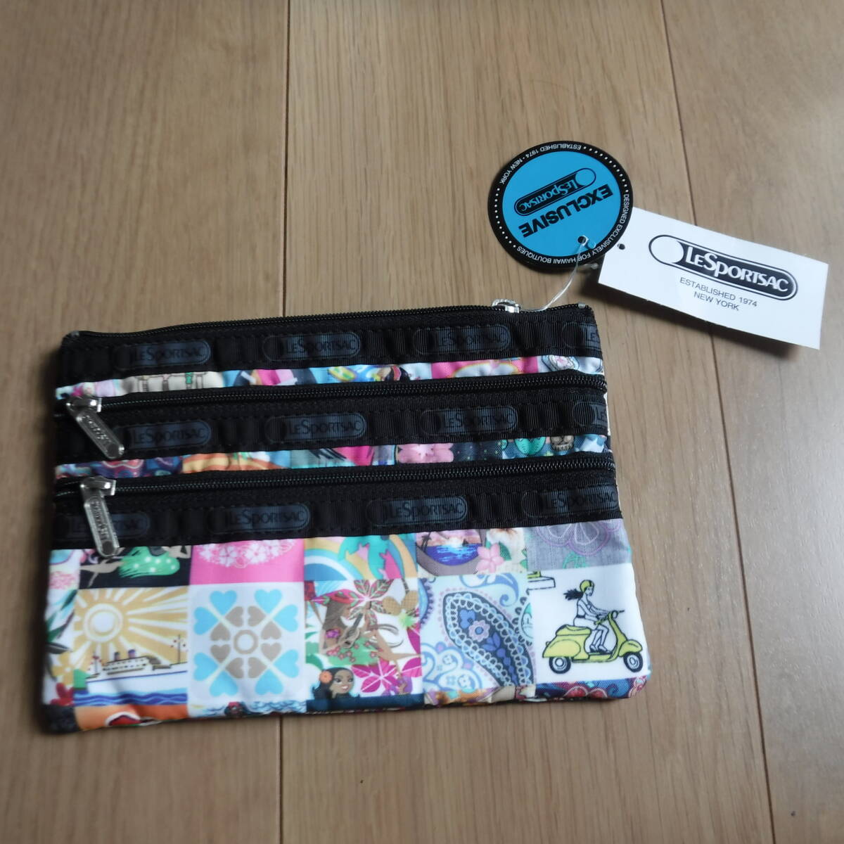 税不要特価 新品タグ付!LESPORTSAC レスポートサック LEHAWAII PATCH 3ジップコスメチック ポーチ♪