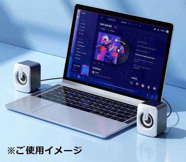 パソコンやモバイルバッテリーなどUSB電源に挿して電力供給、あとはオーディオジャックを挿せば接続完了!