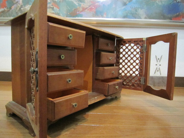 アンティーク レトロ フォールディング 折りたたみ 宝石箱 小物入れ 引出 小型箪笥 アクセサリー ケース ジュエリー箱 ★折りたたみ両ウイング