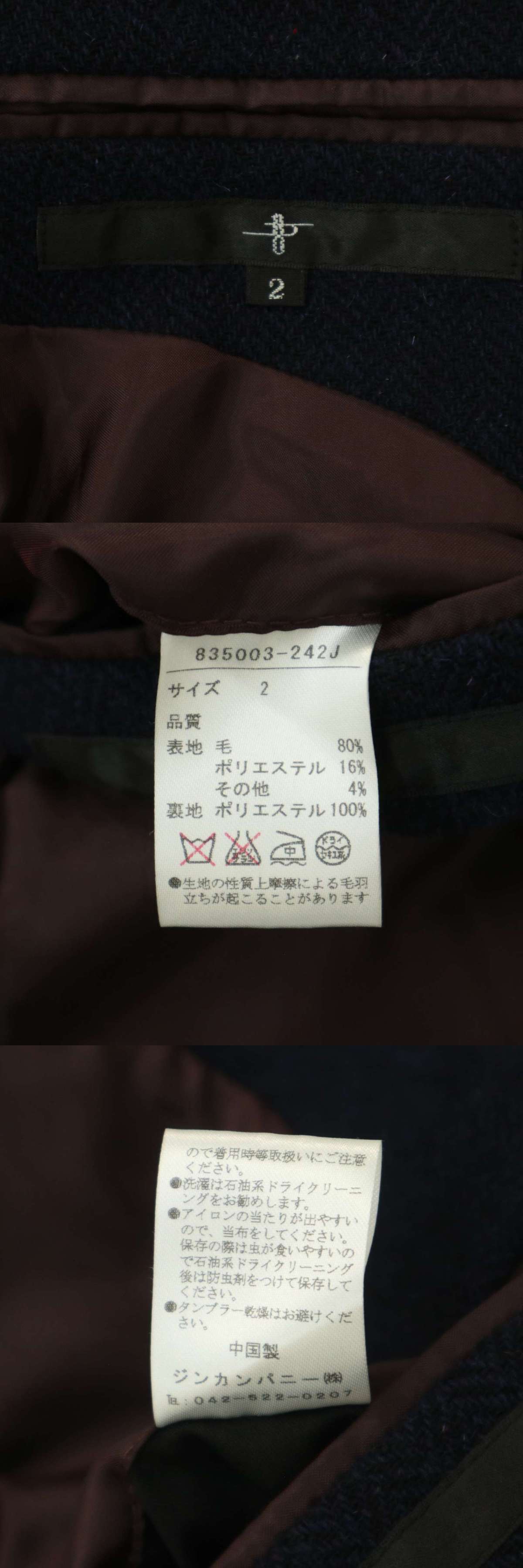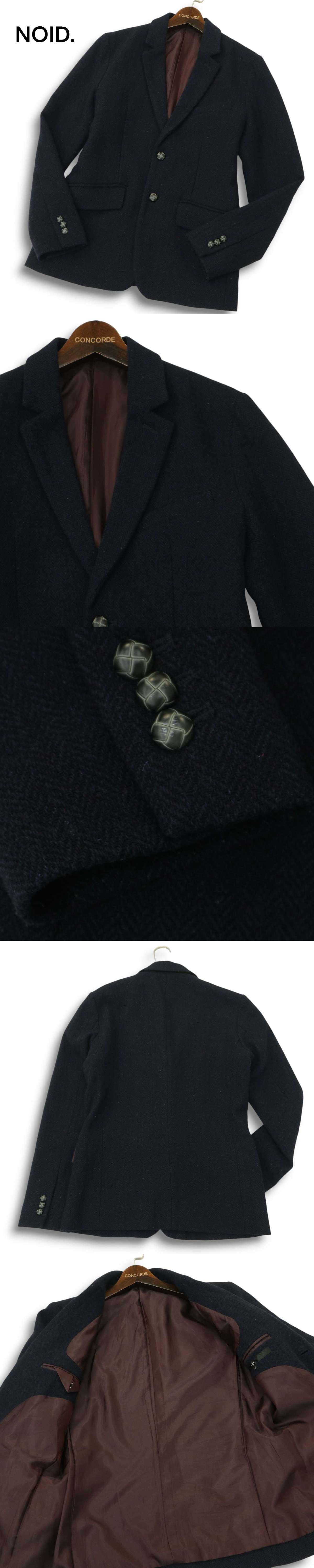 NOID. ノーアイディー 秋冬 ウール ツイード★ スリム アンコン テーラード ジャケット ブレザー Sz.2 メンズ ネイビー