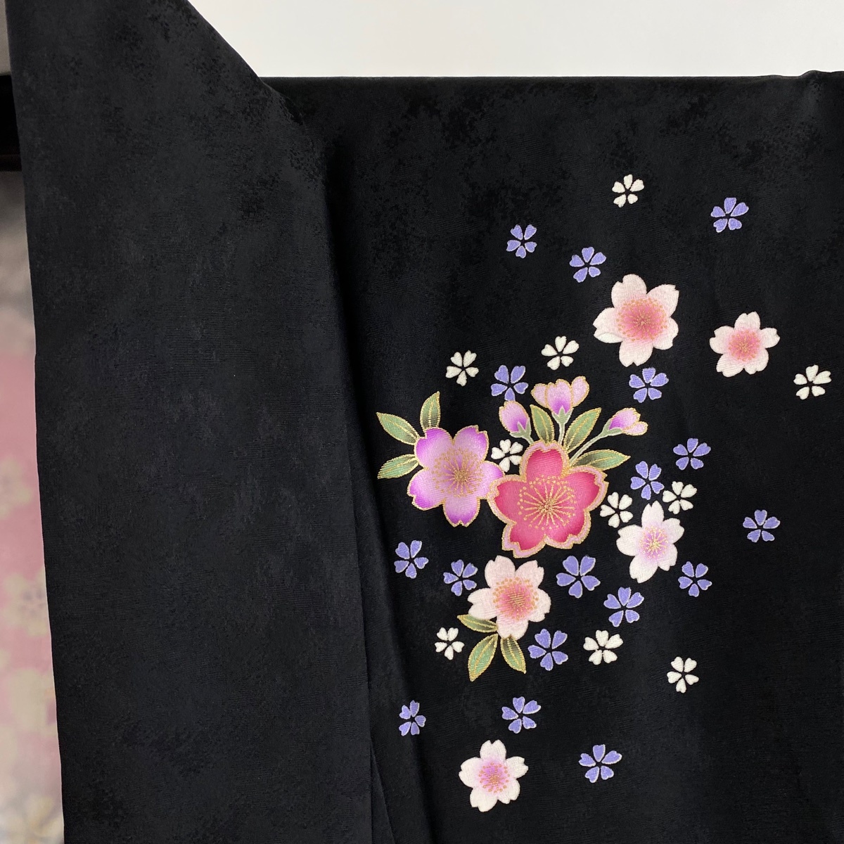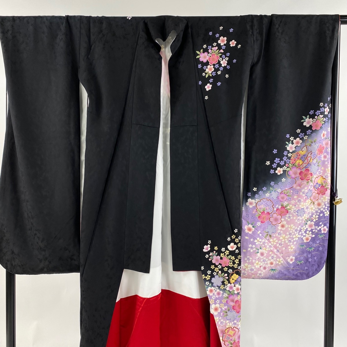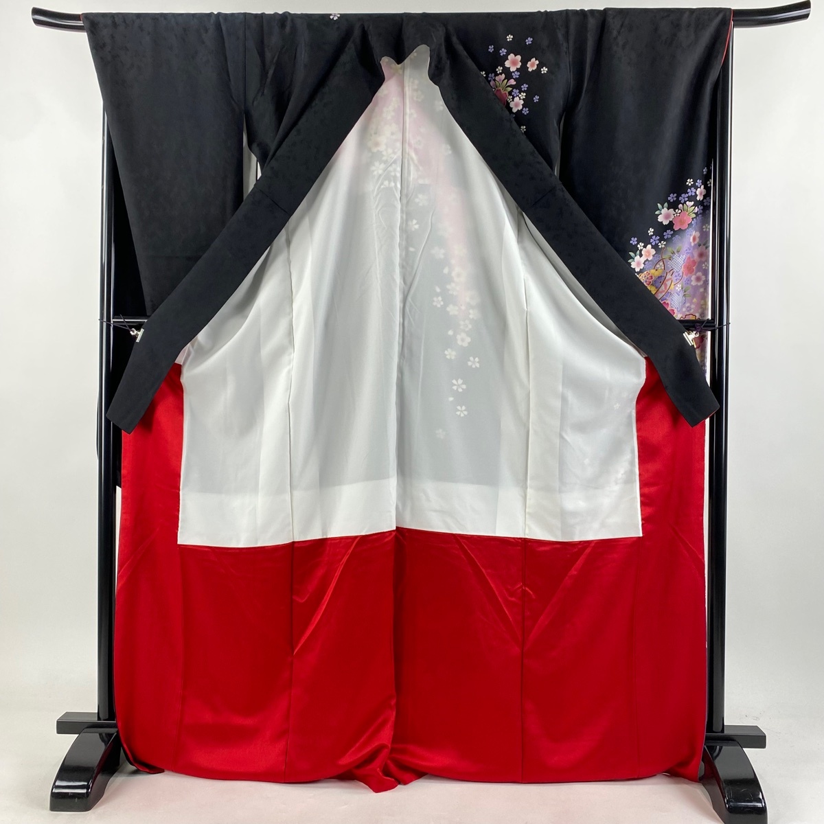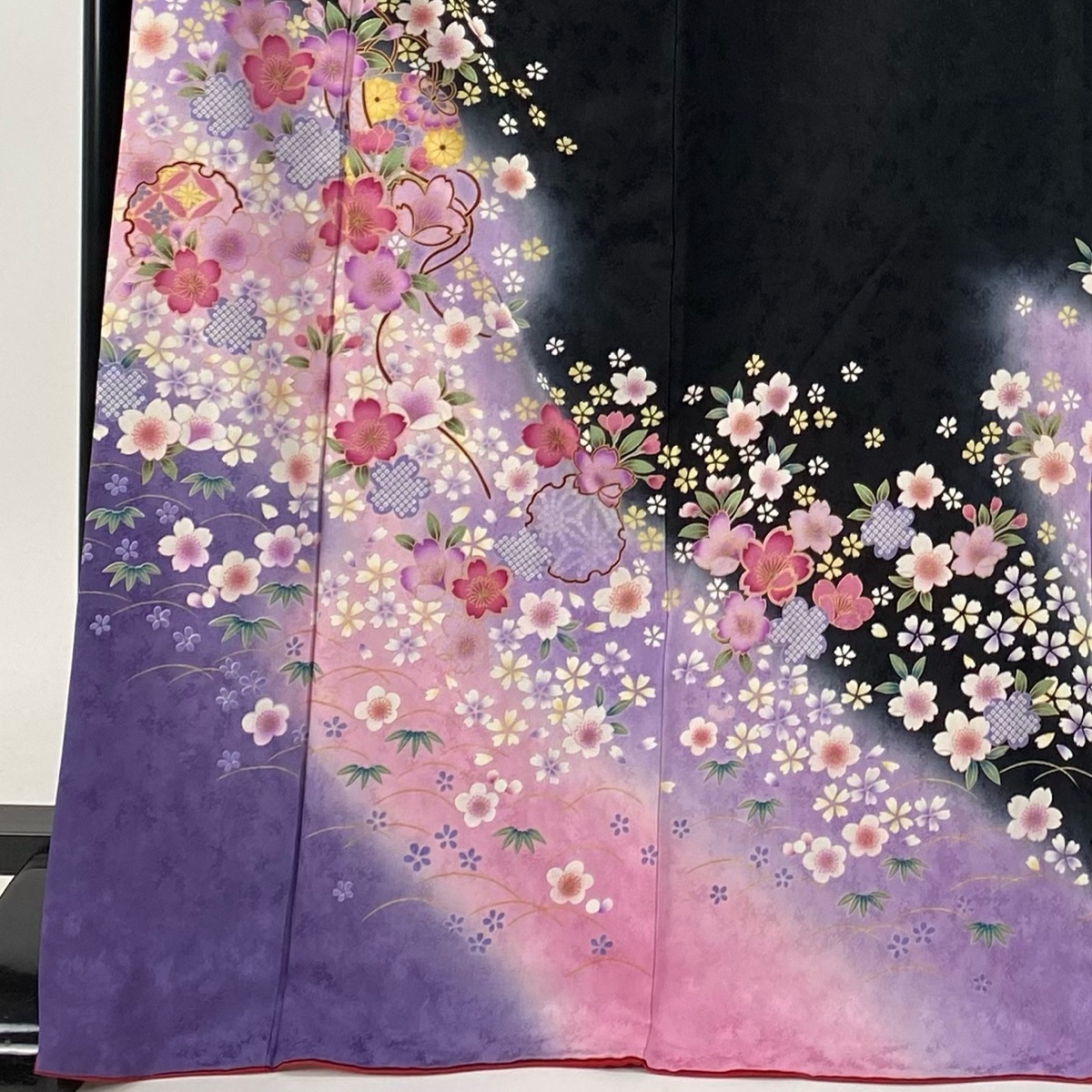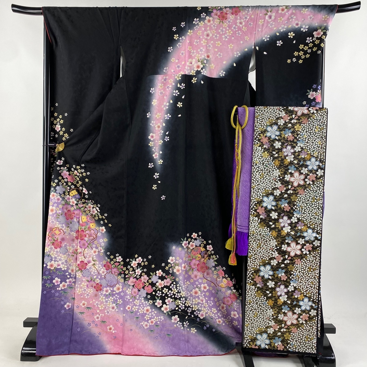 振袖 名品 袋帯フルセット 鞠 桜 金彩 ぼかし 黒 袷 身丈172.5 裄丈71 L 正絹 【中古】 |