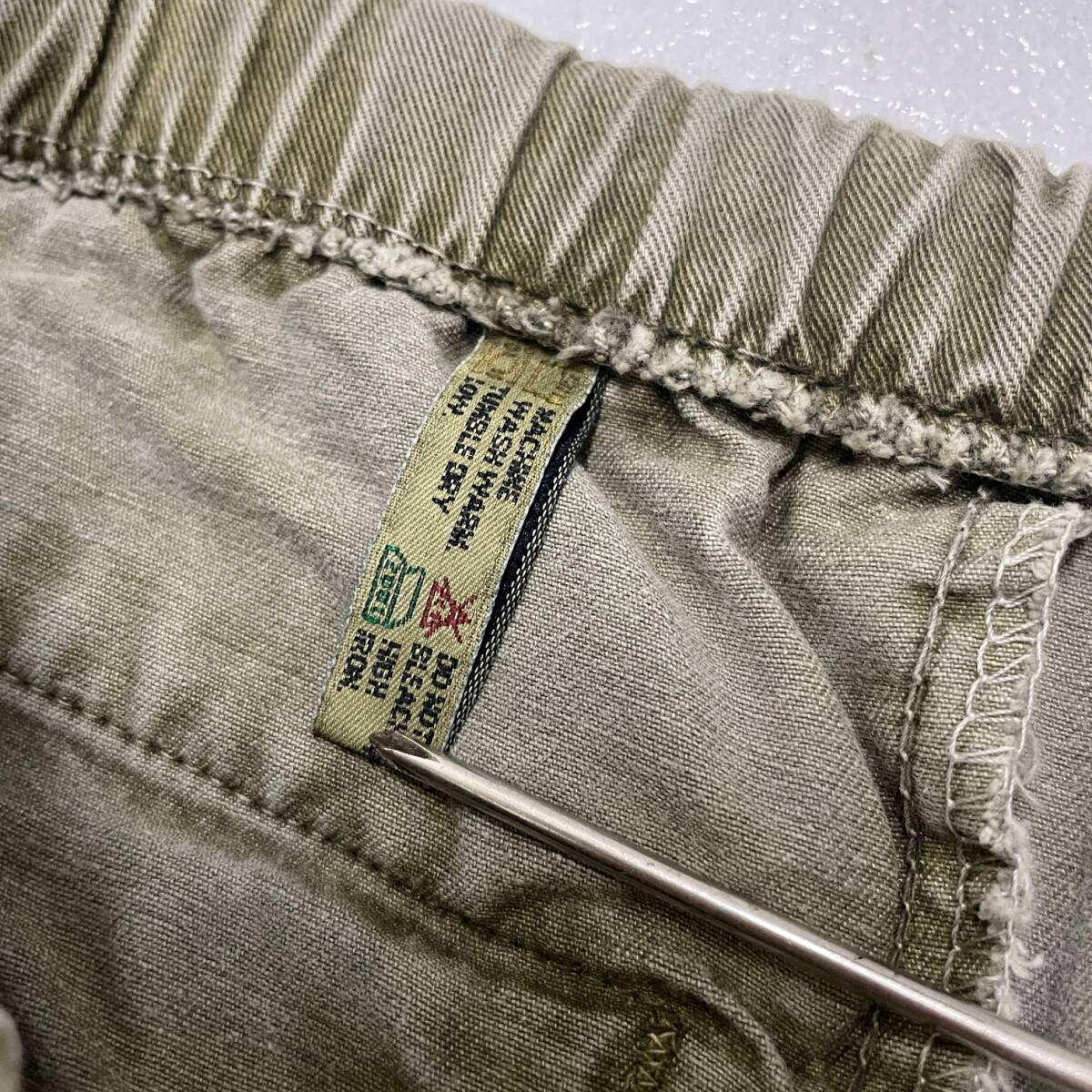 アメリカ古着になります。 90~00年代のビンテージです。 丈夫なコットンチノ、フェードしたカーキになります。 ウエストはウェビングベルト、股下ガゼット付き。 洗濯済みになります。お探しの方におすすめです。 | |||