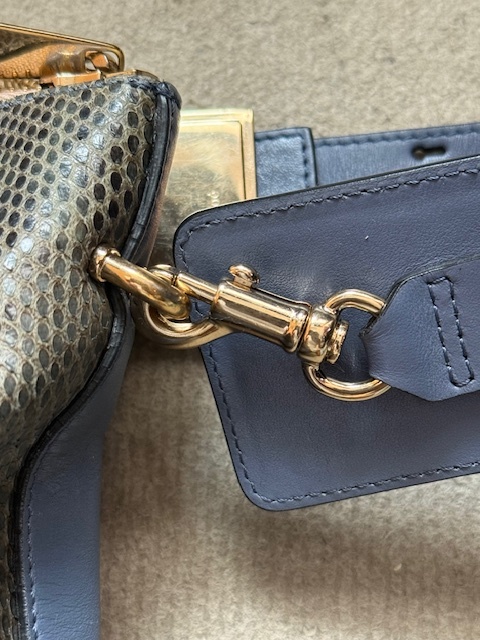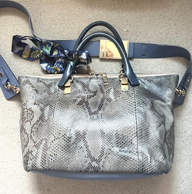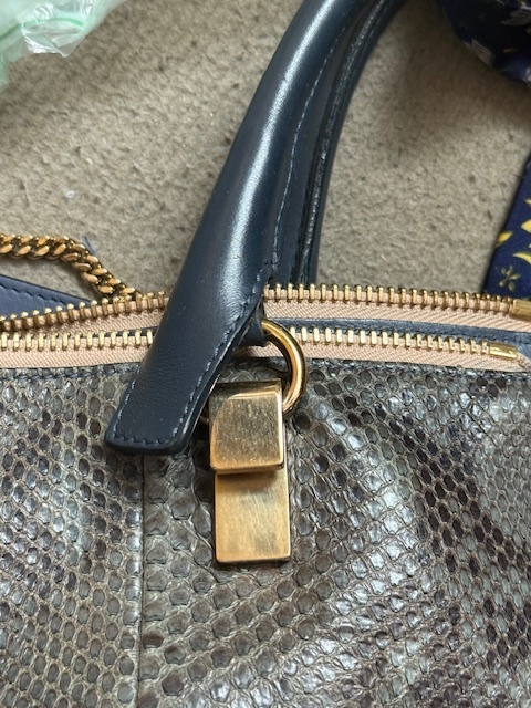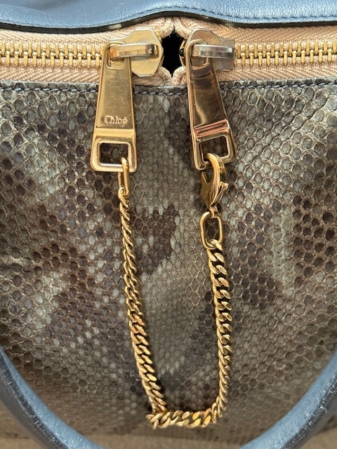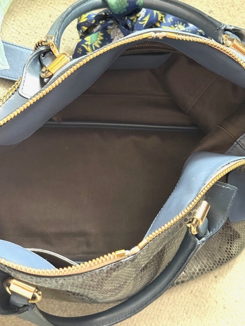 ご覧いただきありがとうございます。クロエのバイソン柄2wayバックです、サイズはW40xH25xD15(底部分)cm程度です。表側がバイソン皮で裏は上品なブルーグレーレザーで大変高級感のあるバックです。格安出品いたしますのでお写真をよく確認いただきあ落札後はノークレームノーリターンでお願いします、
