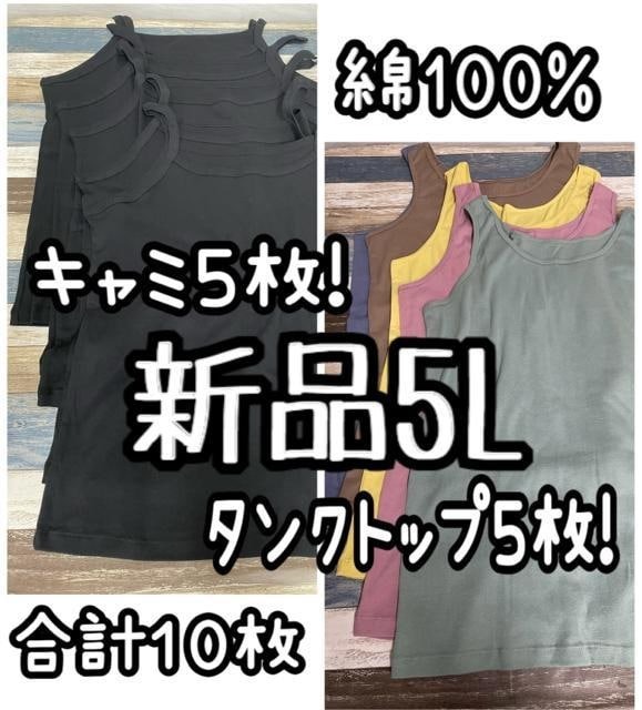 新品☆5L♪綿100%♪黒キャミソール&タンクトップ10枚まとめて♪☆Q112