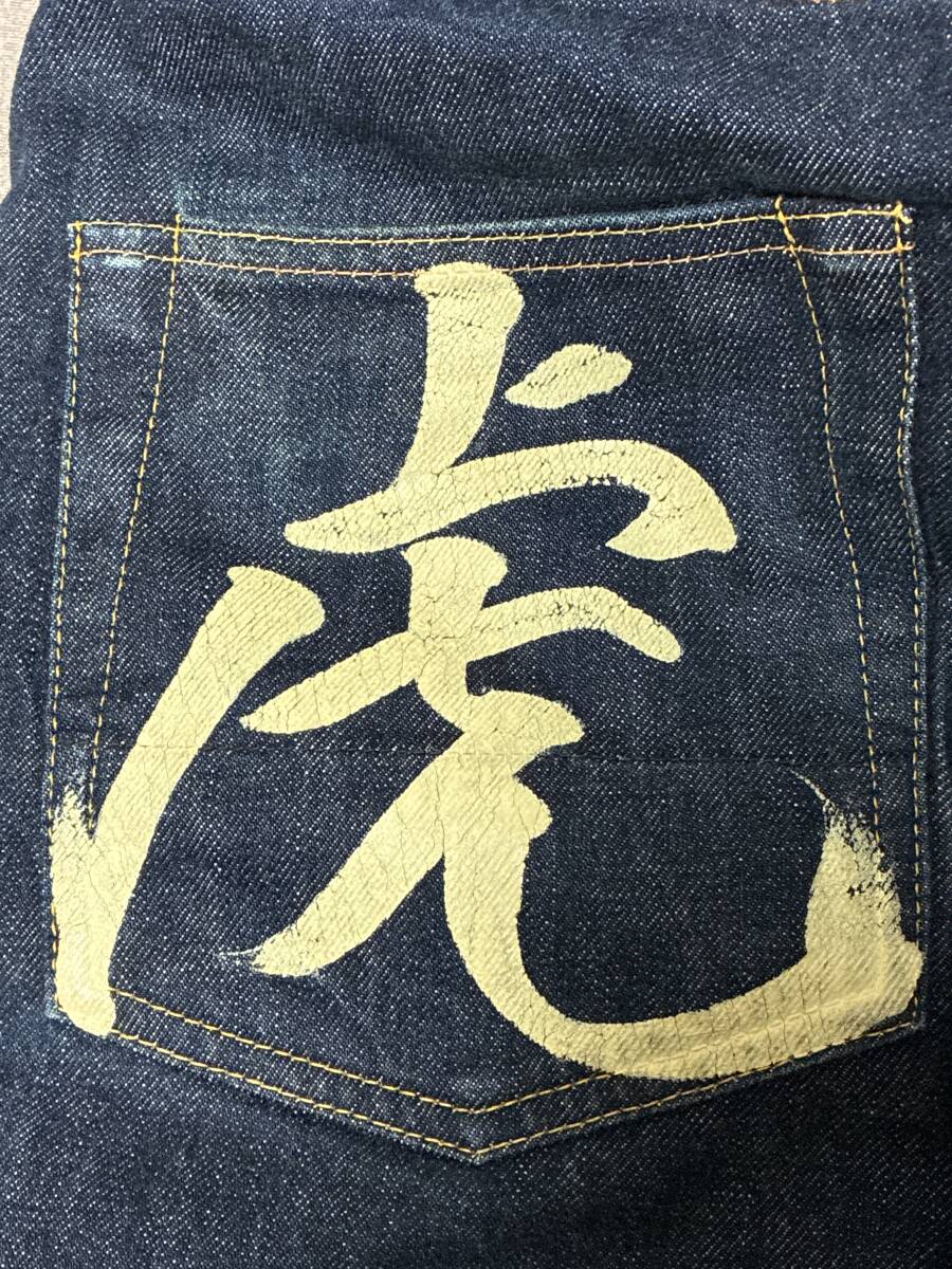 使用状況:10年以上前、横浜の直営店で購入しました。トラ耳のシリーズの為、虎の文字を書いてもらいました。購入→洗濯→乾燥機を1回のみ。まだまだ色落ちが楽しめます。