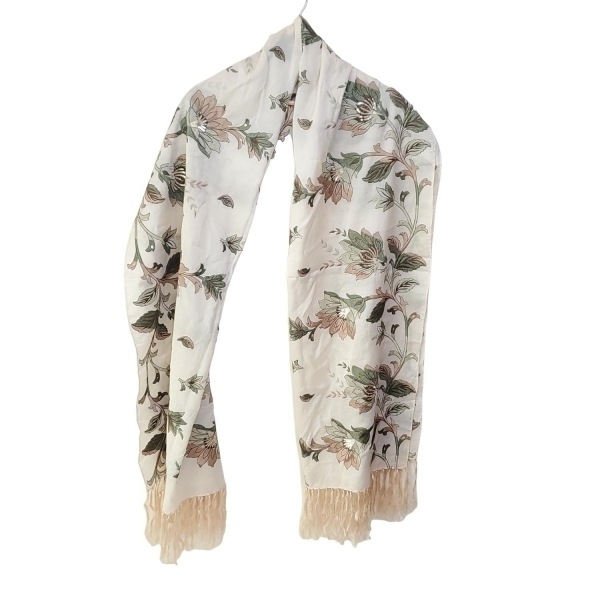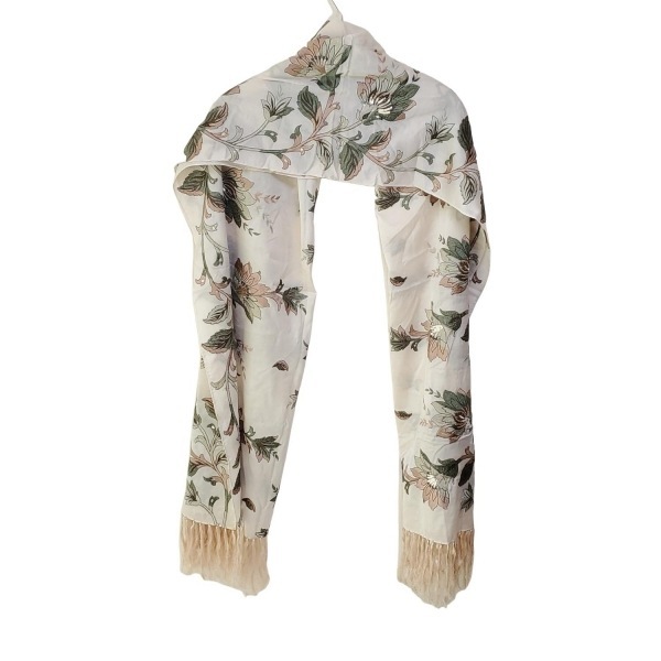 グレースコンチネンタル GRACE CONTINENTAL ストール(ショール) - コットン ベージュ×カーキ×マルチ 刺繍/スパンコール/花柄 美品