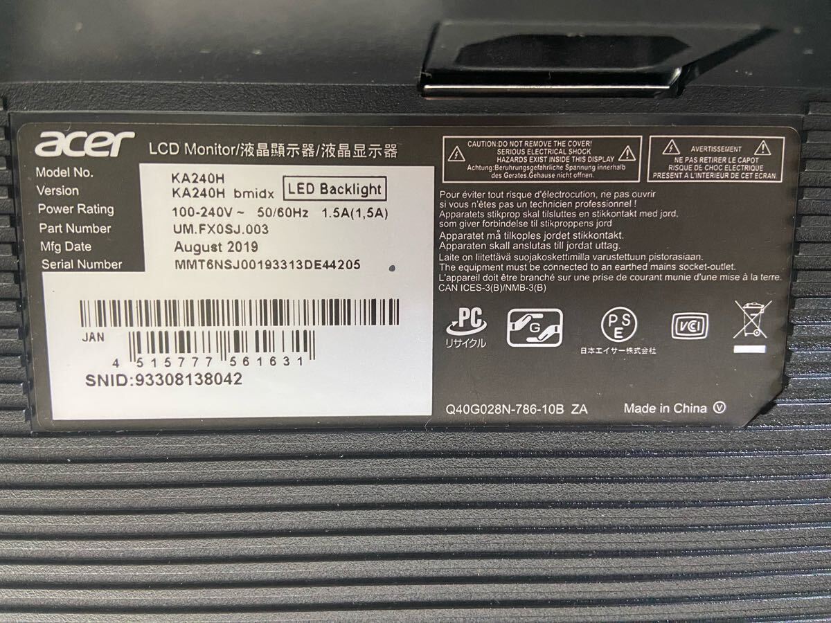C2DP-5070739 Acer KA240H KA240Hbmidx 24.01*チワイド 液晶ディスプレイフルHD/ノングレア/TN/HDMI /モニター