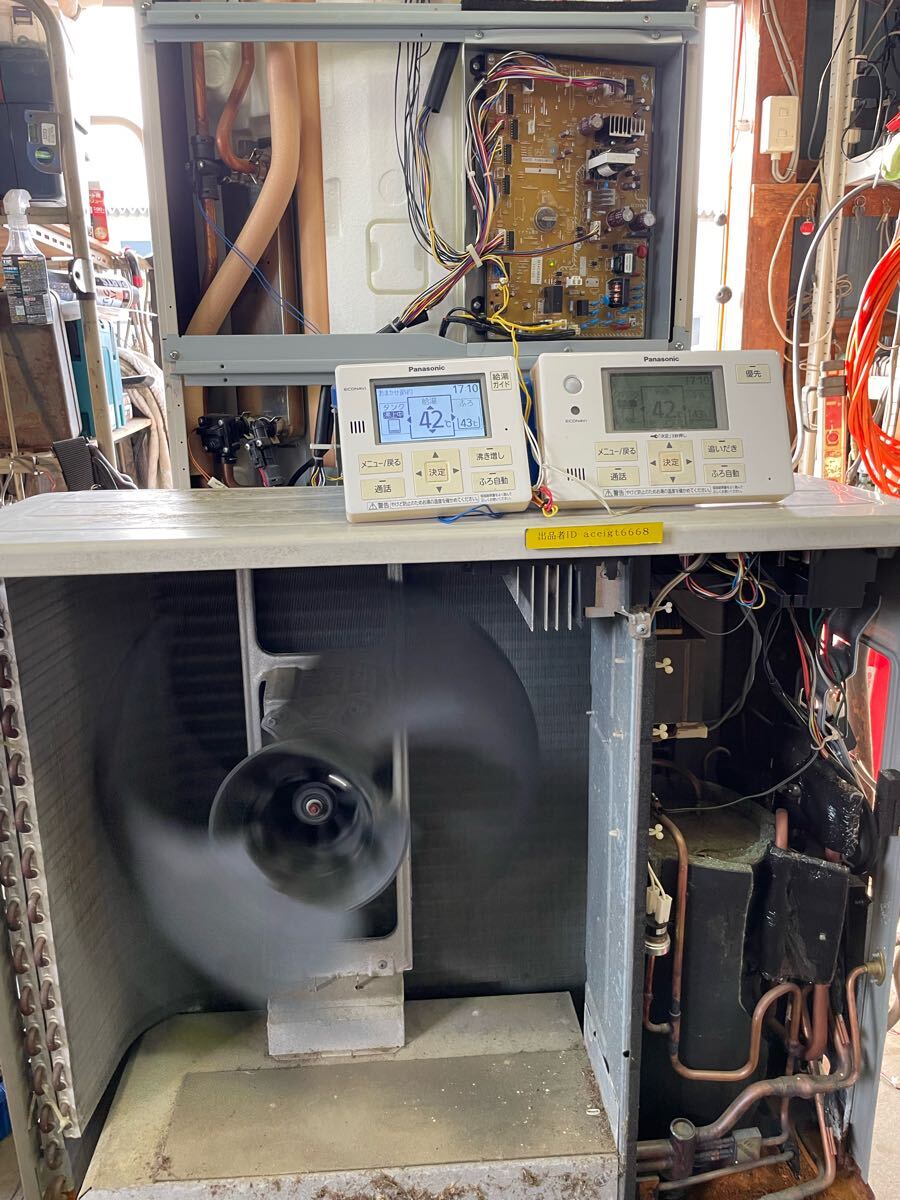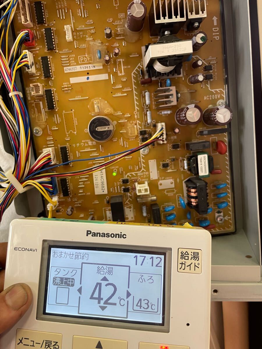 簡易的に電源に接続し循環ポンプの電気的な動作を確認しました。 |