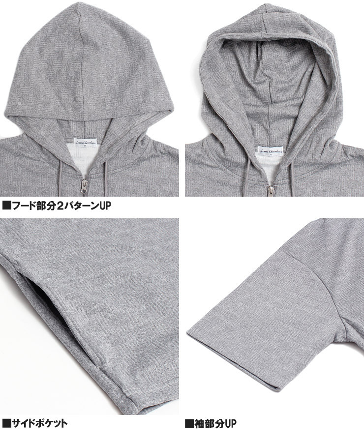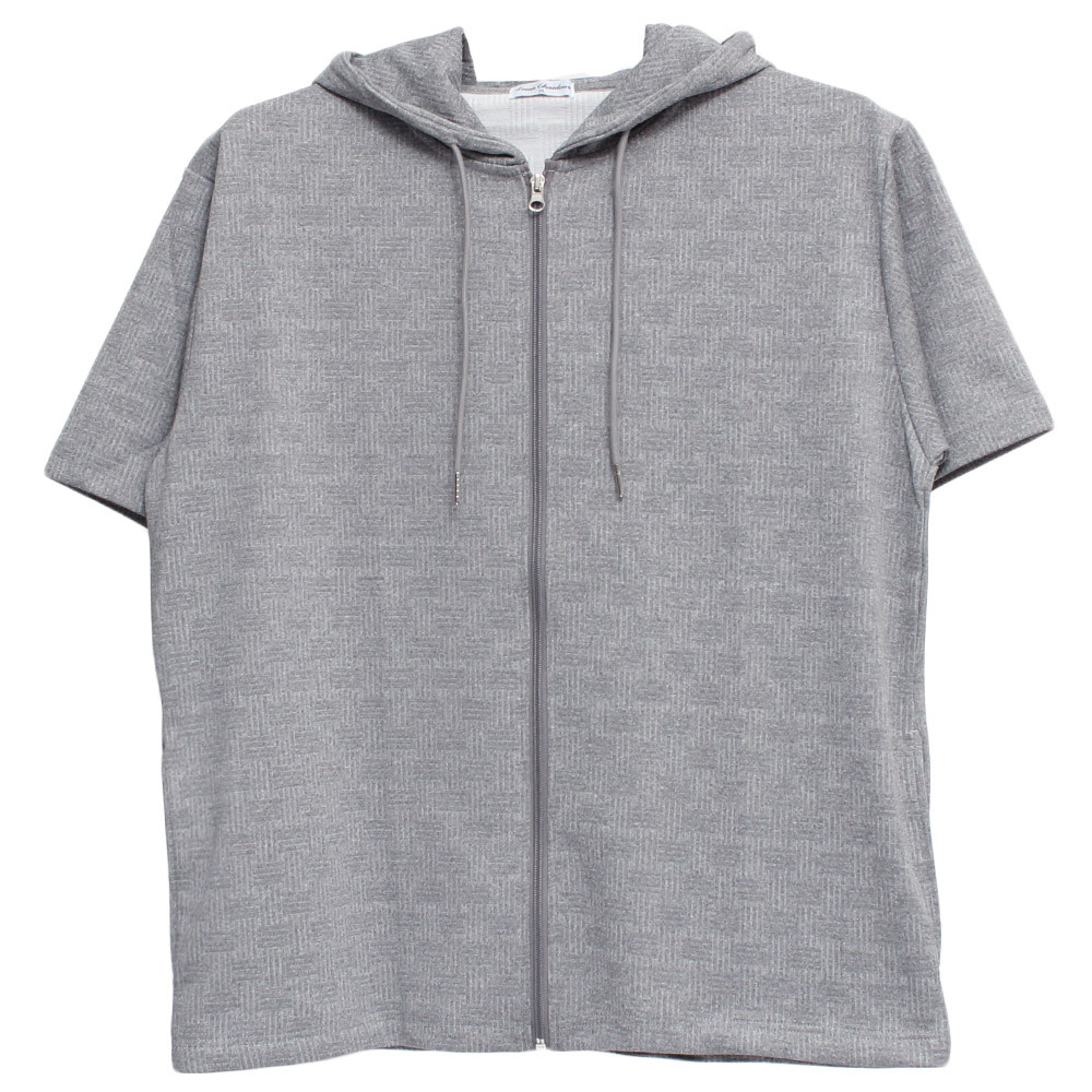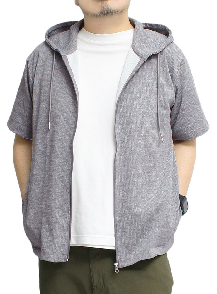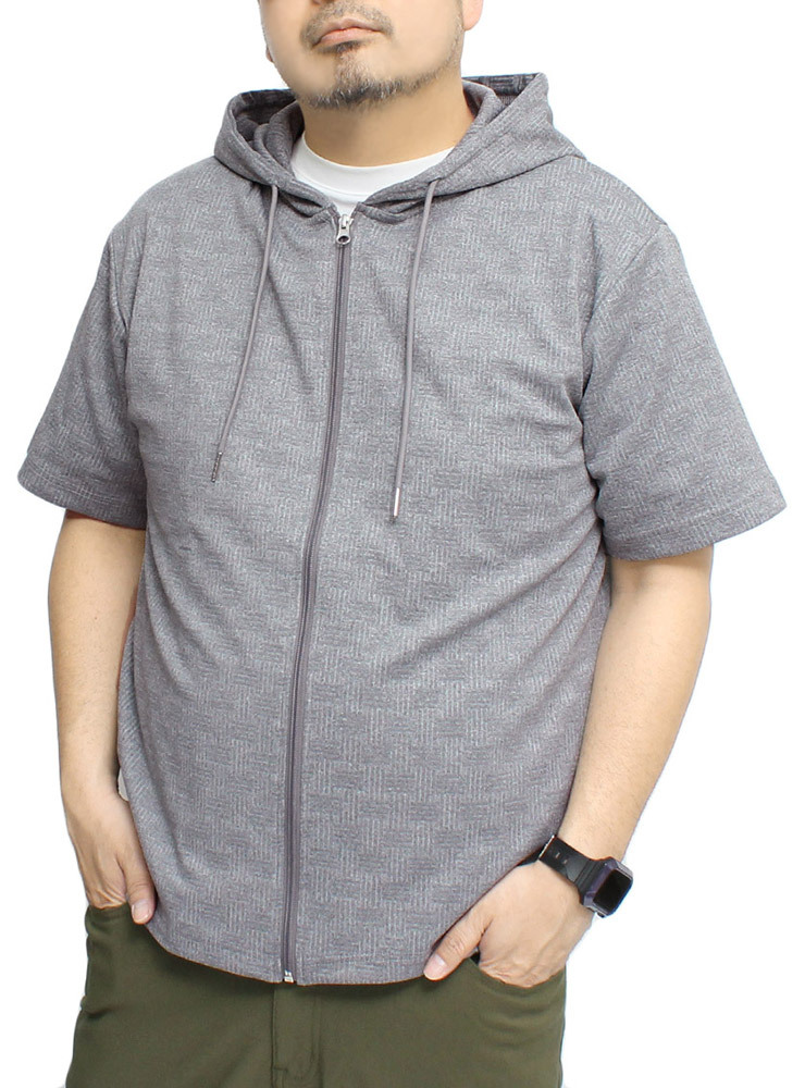 商品名 | 【新品】 2L グレー パーカー メンズ 大きいサイズ 半袖 ジップアップ ジャガード柄 ゆったり スウェット ジップアップパーカー |