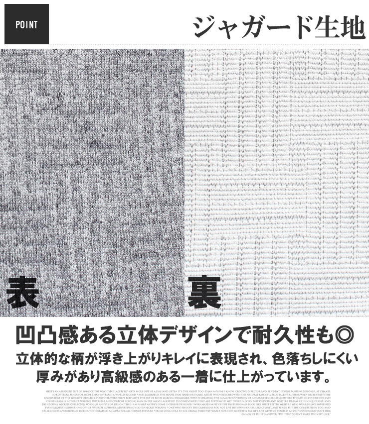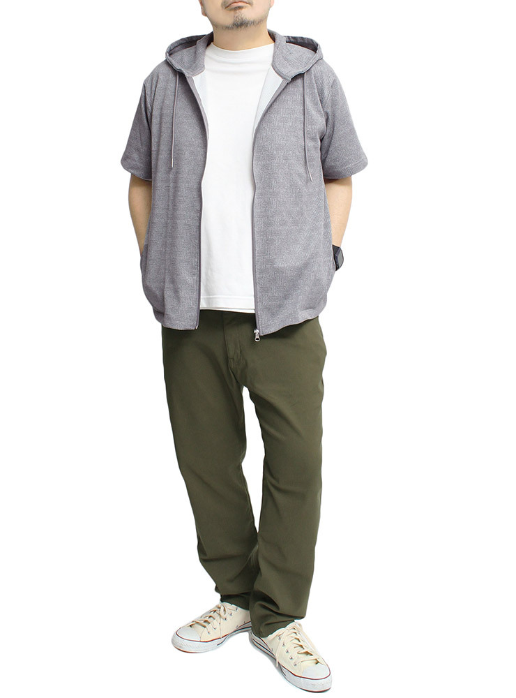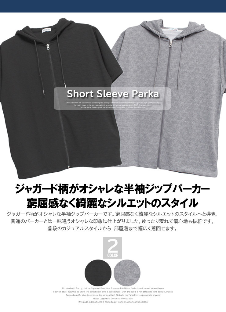商品説明 | ジャガード柄がオシャレな半袖ジップパーカーです。 |